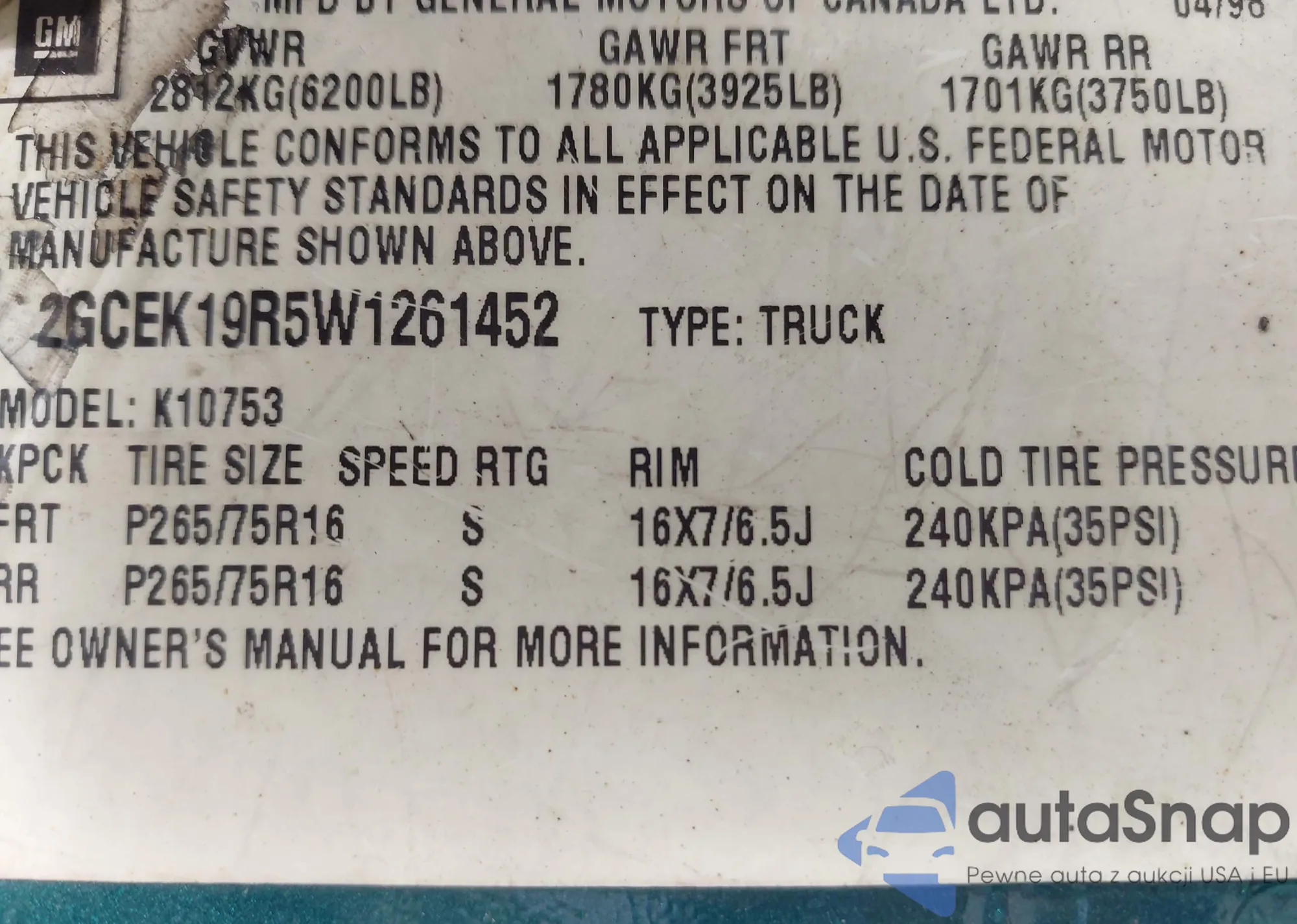 VIN: 2GCEK19R5W1261452