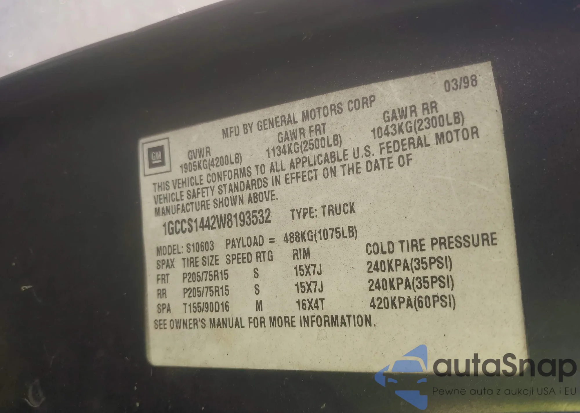 VIN: 1GCCS1442W819353T