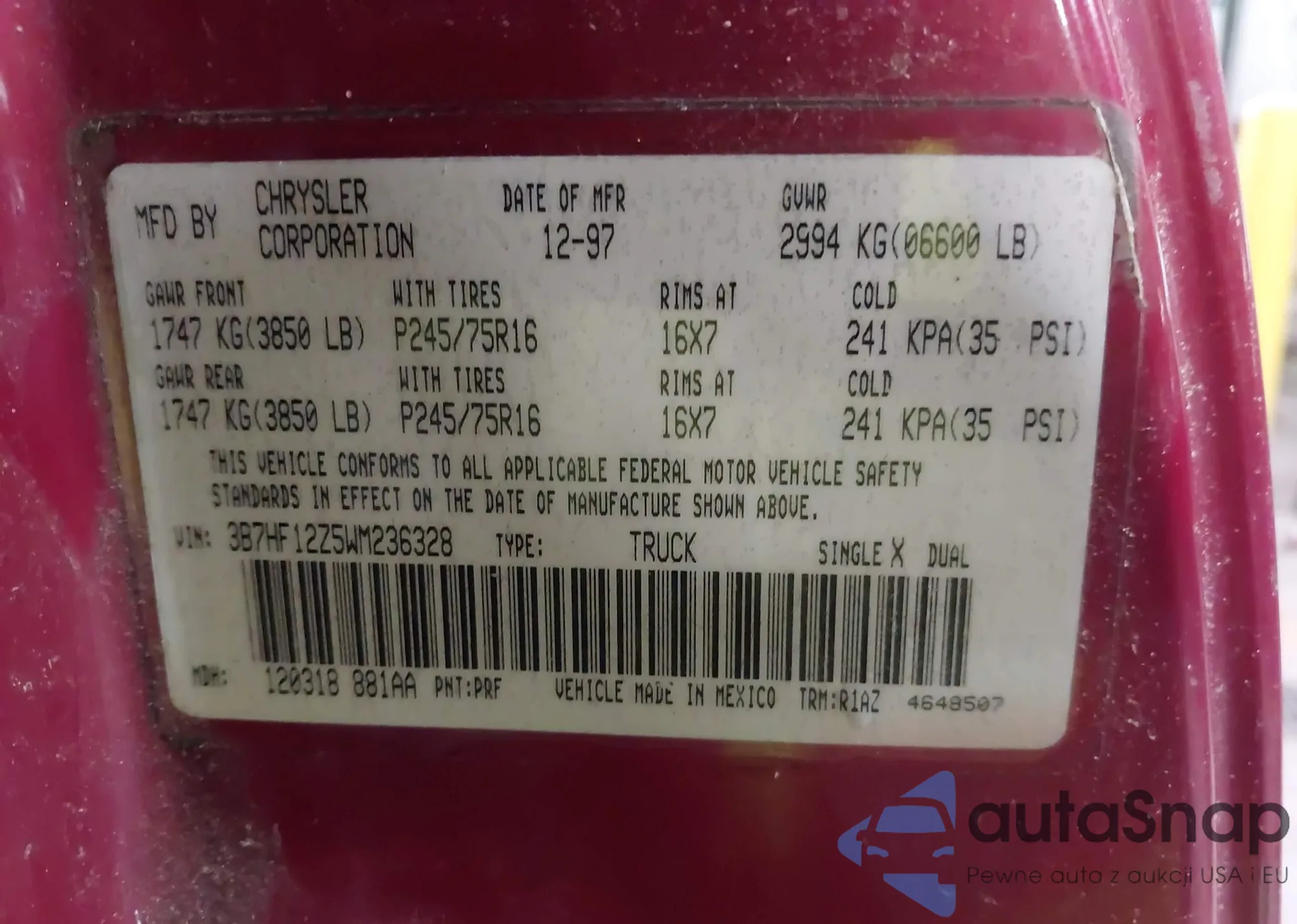VIN: 3B7HF12Z5WM236328