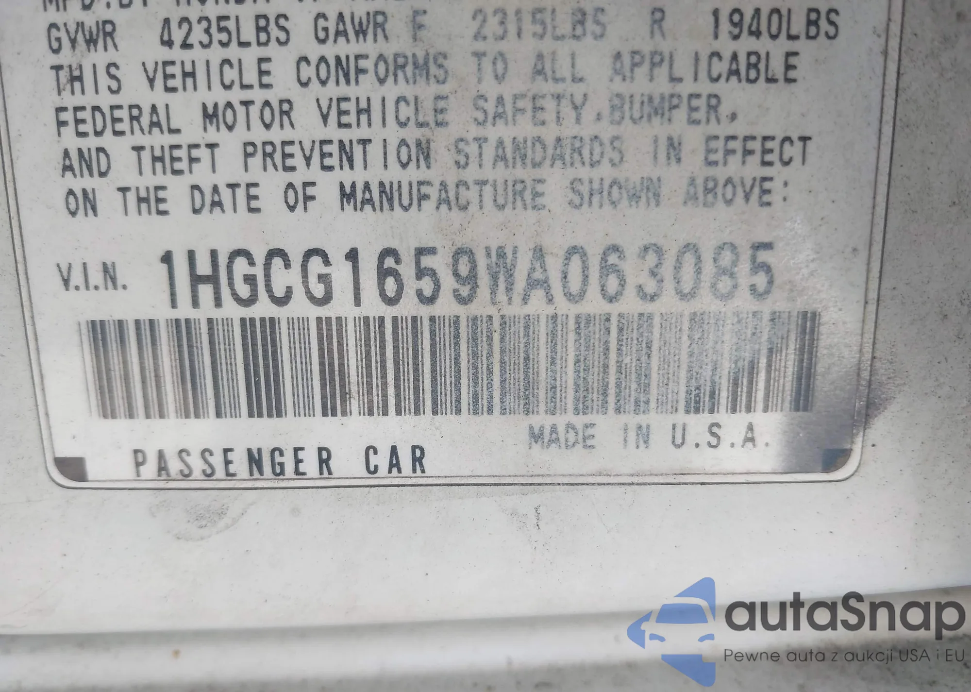 VIN: 1HGCG1659WA063085