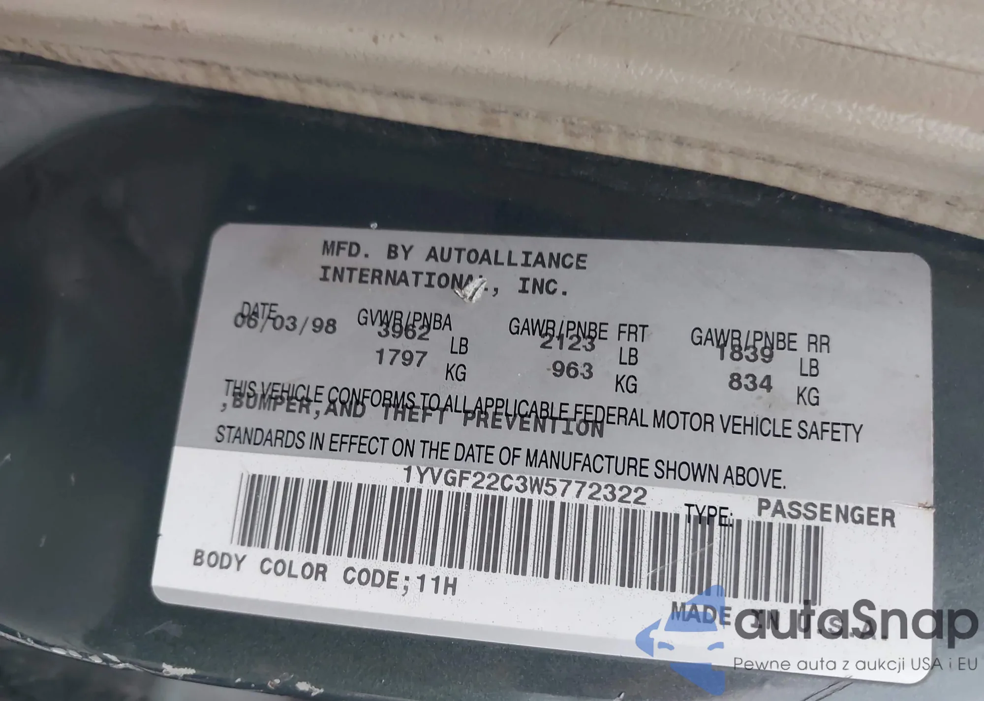 • VIN: 1YVGF22C3W5772322