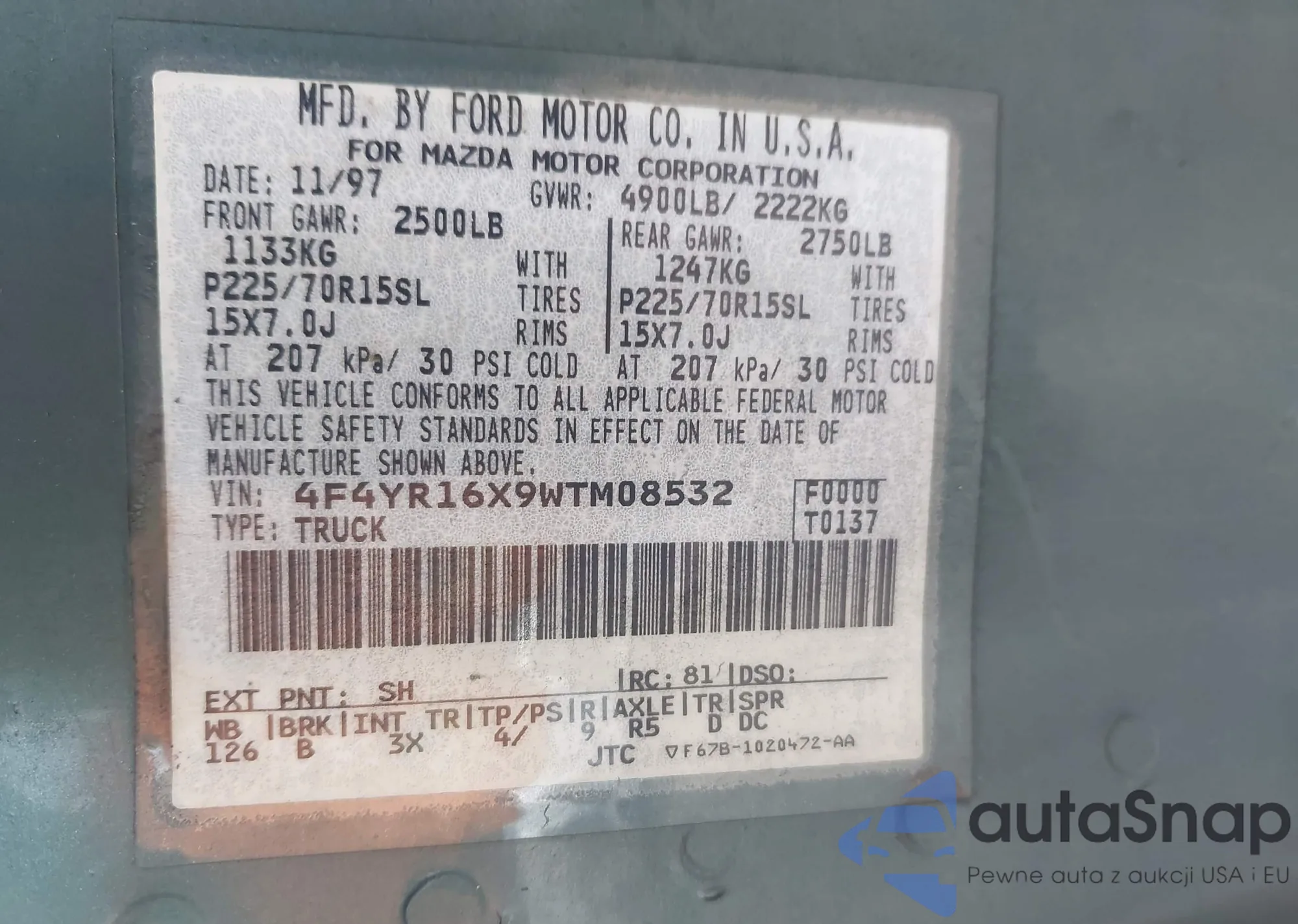 • VIN: 4F4YR16X9WTM08532