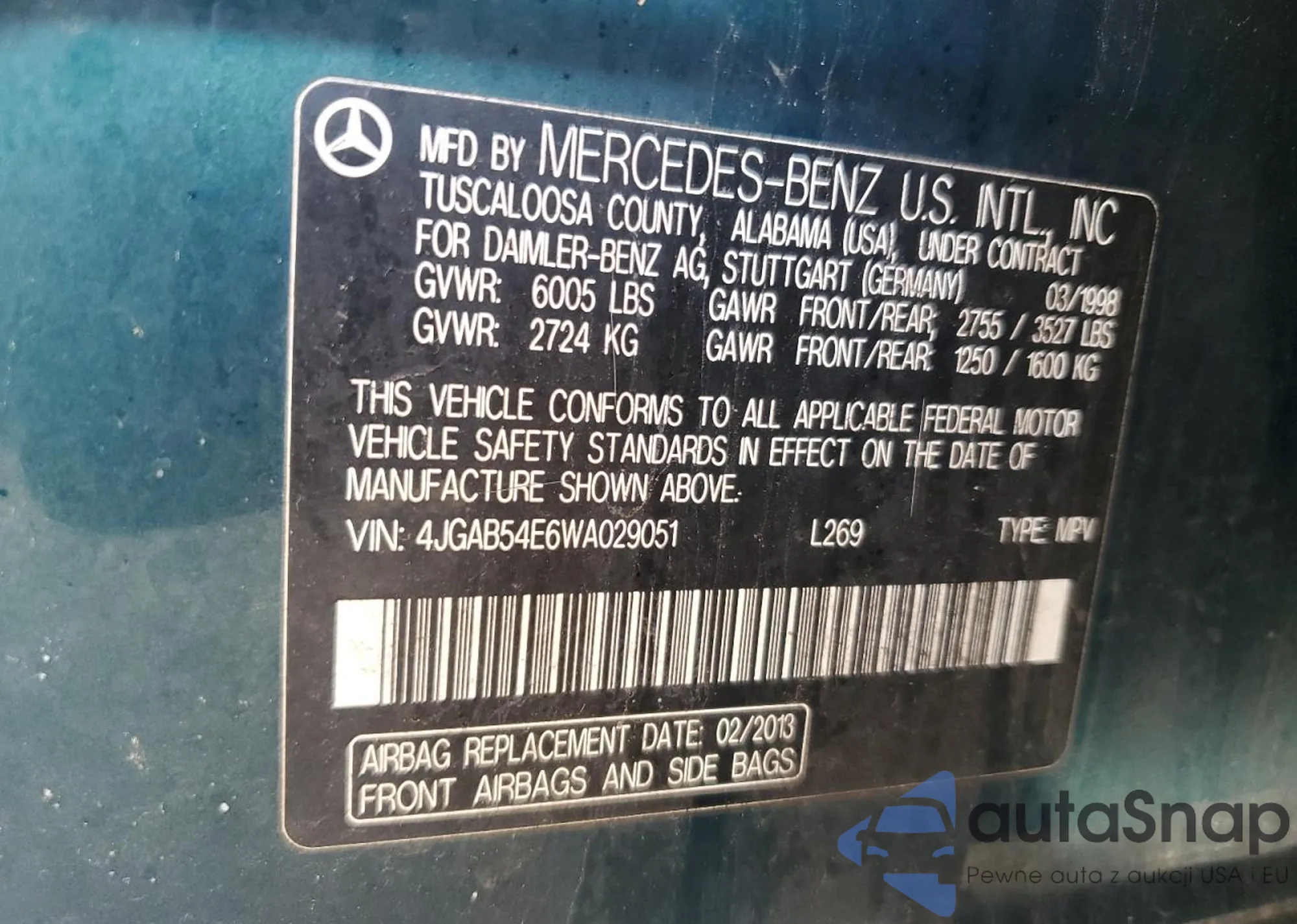 The car Mercedes-Benz M-klasse 1998 (VIN 4JGAB54E6WA029051) is sold by an unverified seller. We recommend checking the Carfax report and confirming registration possibilities before purchase.