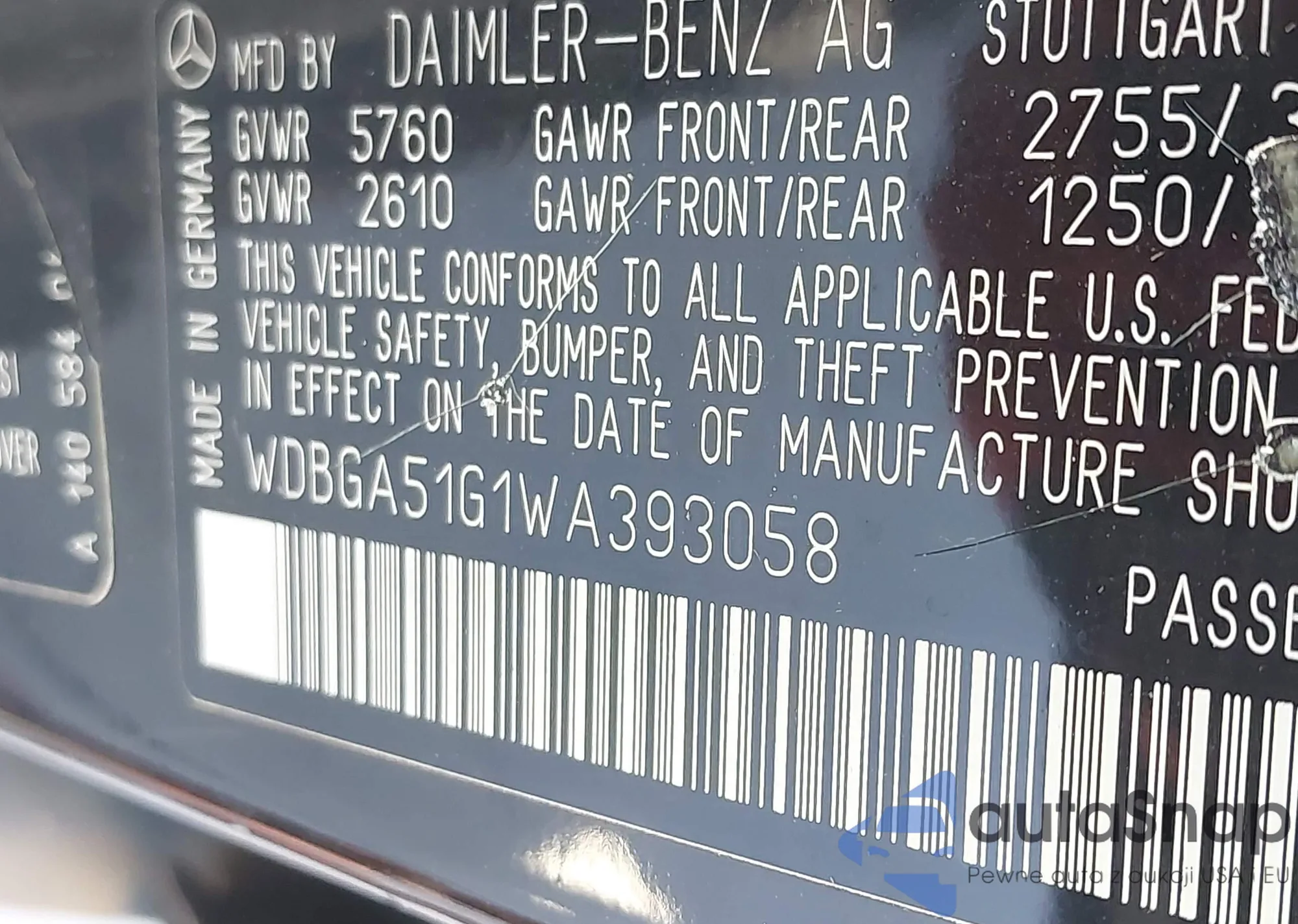 • VIN: WDBGA51G1WA393058