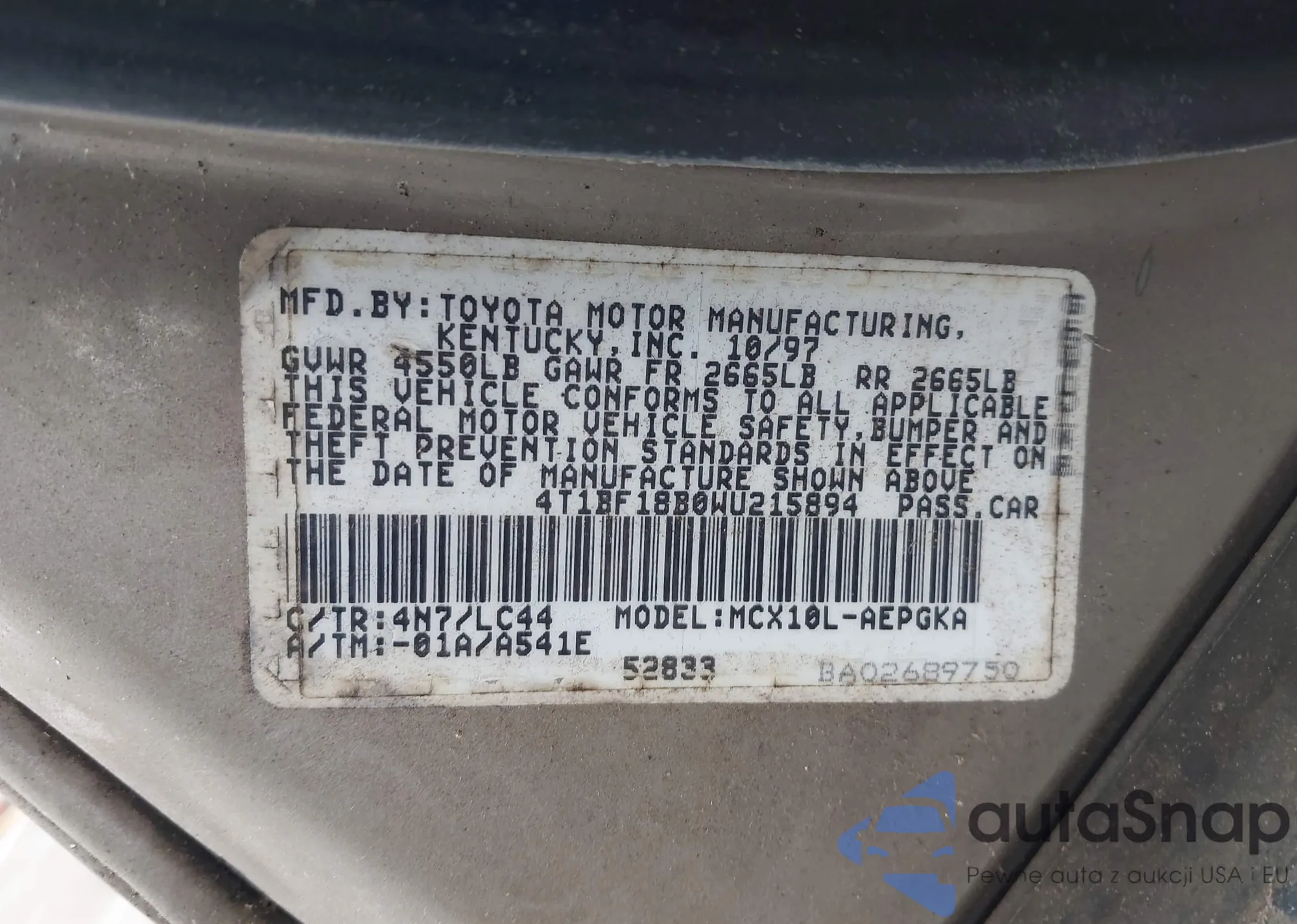 VIN: 4T1BF18B0WU215894
