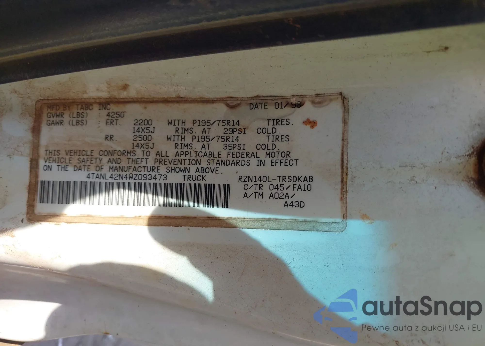 • VIN: 4TANL42N4WZ093473