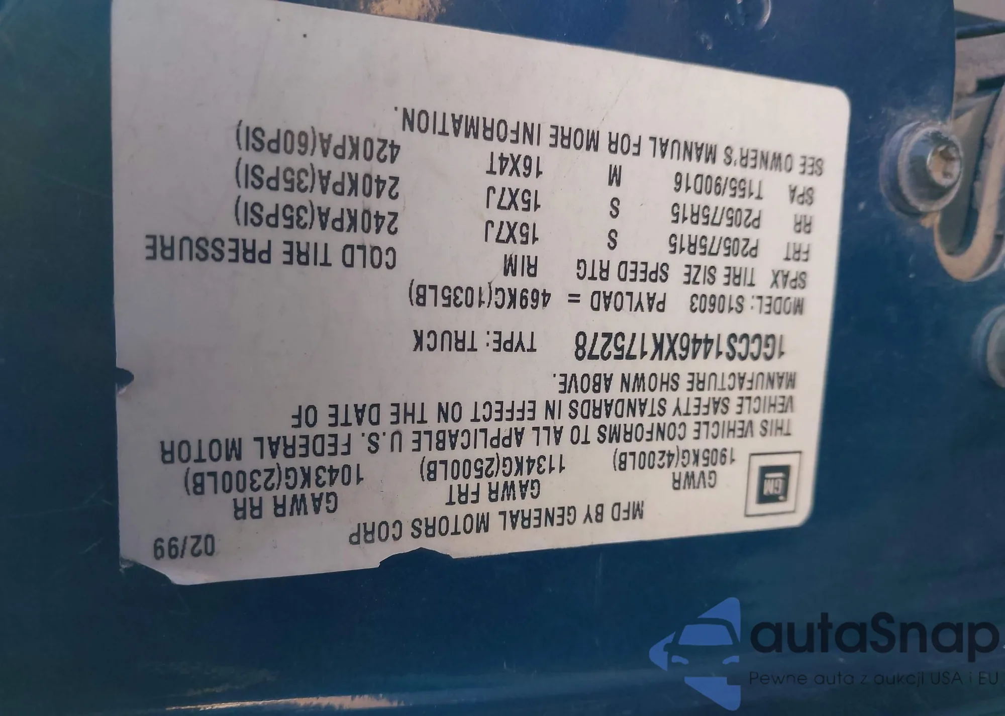 VIN: 1GCCS1446XK175278