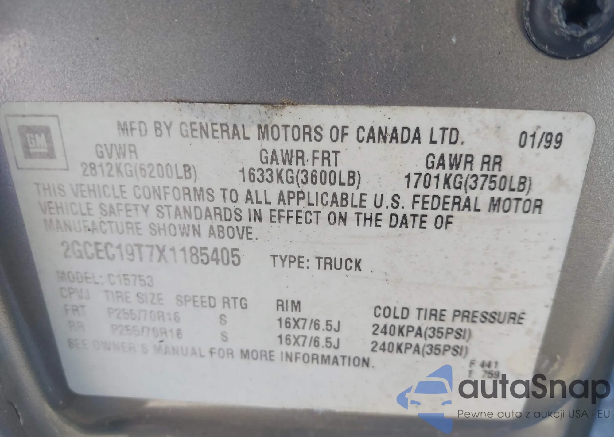 • VIN: 2GCEC19T7X1185405