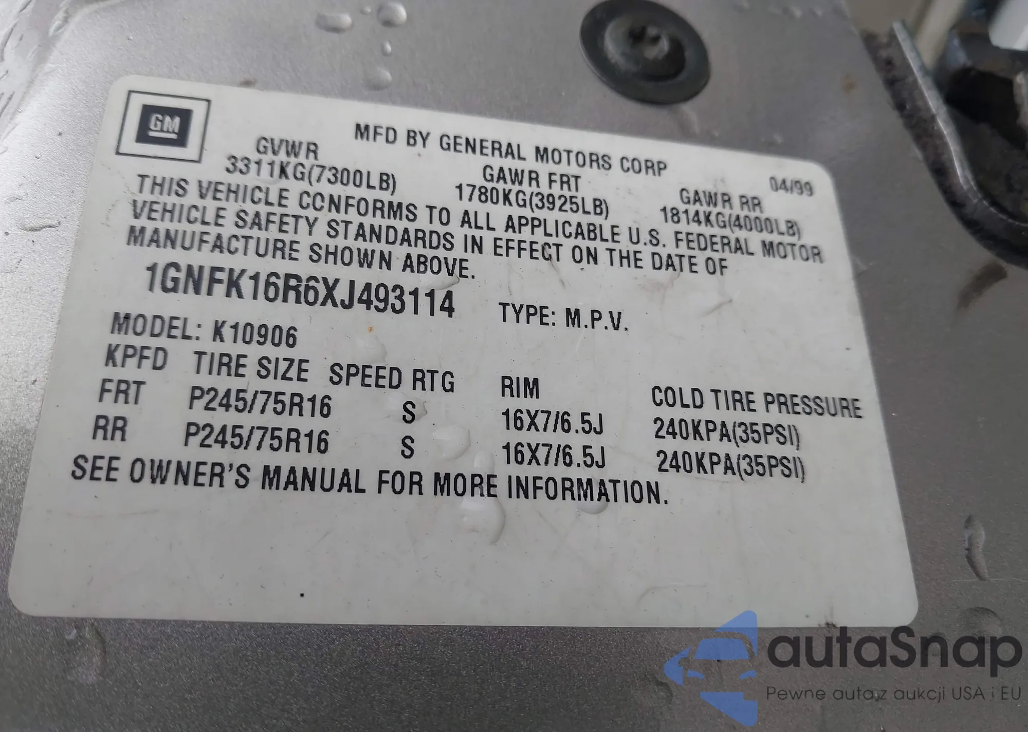 The car Chevrolet Express 1999 (VIN 1GNFK16R6XJ493114) is sold by an unverified seller. We recommend checking the Carfax report and confirming registration possibilities before purchase.