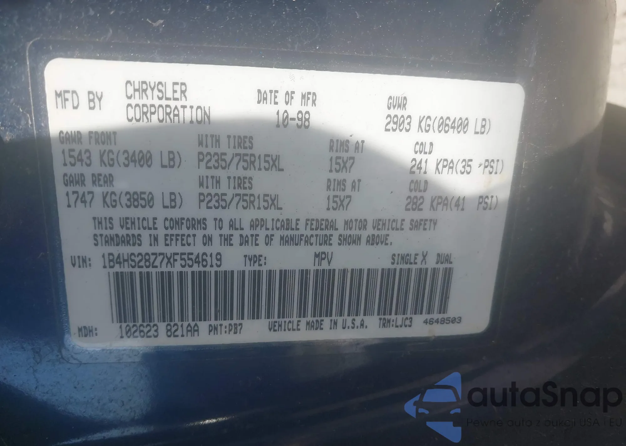 • VIN: 1B4HS28Z7XF554619