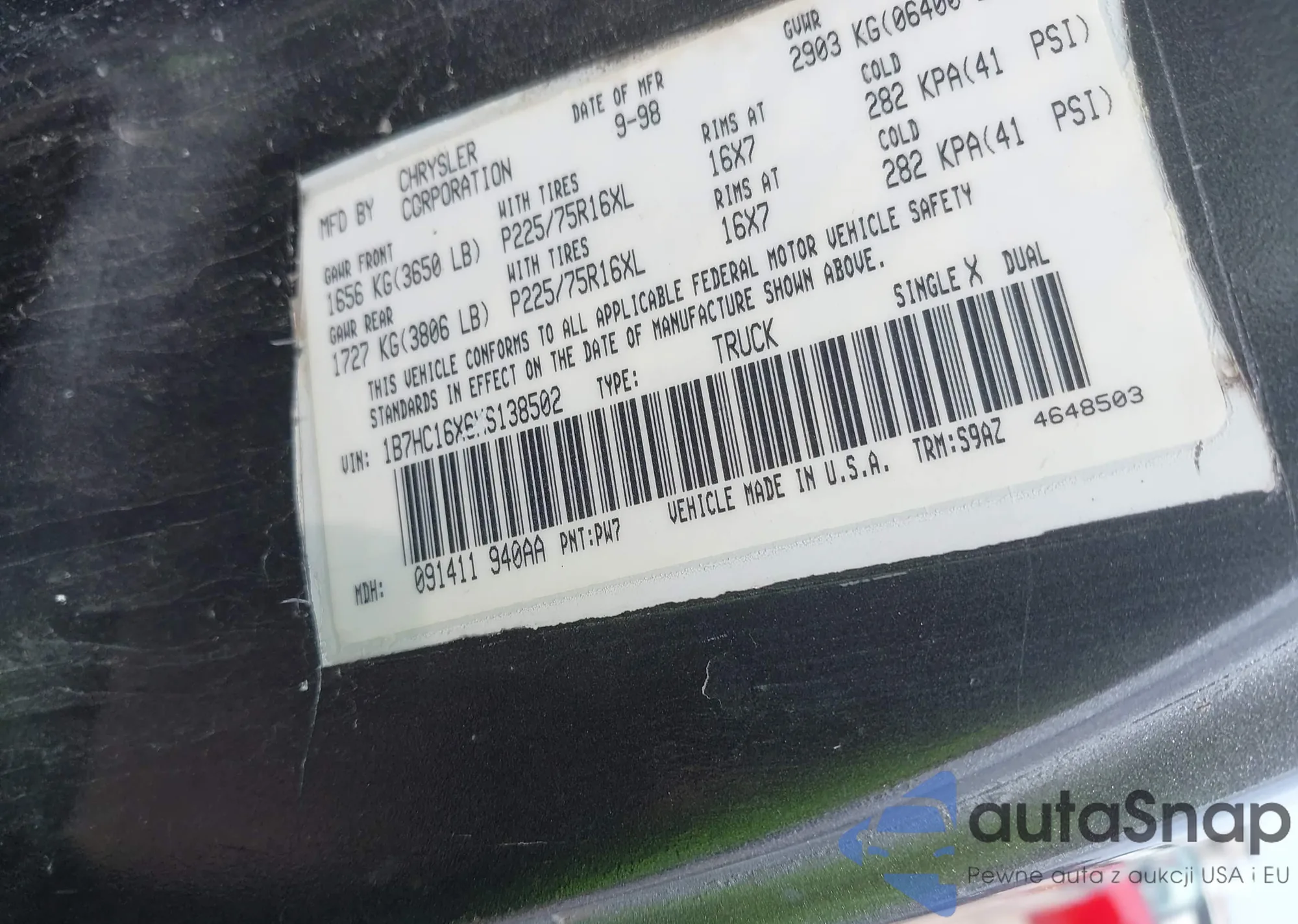 VIN: 1B7HC16X6XS138502
