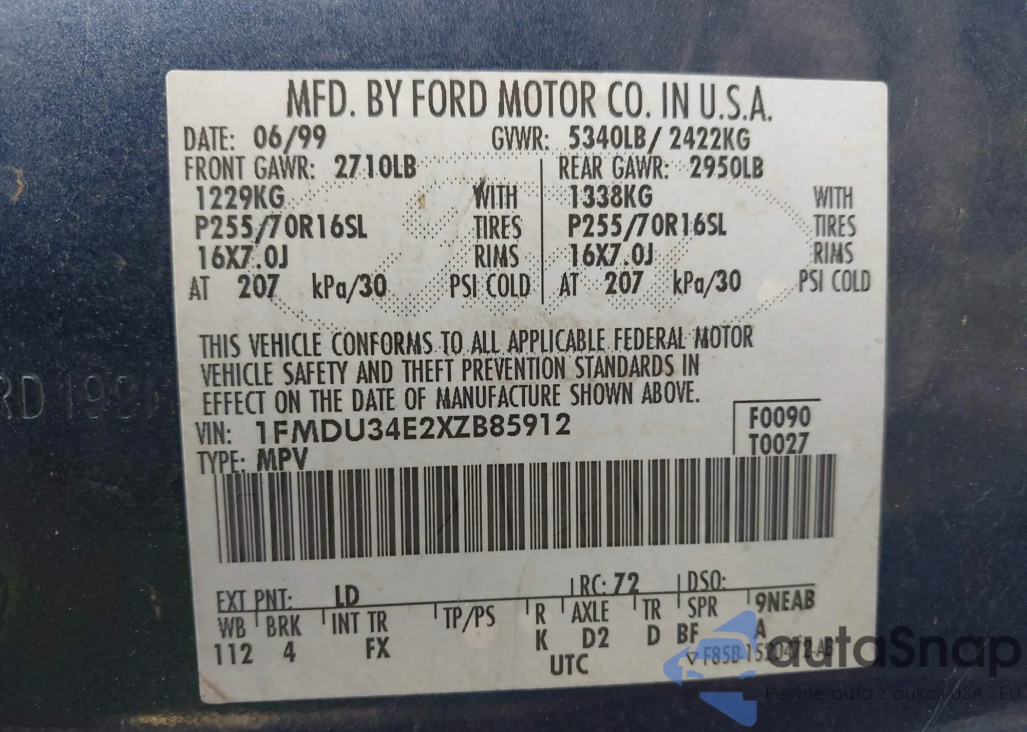 VIN: 1FMDU34E2XZB85912