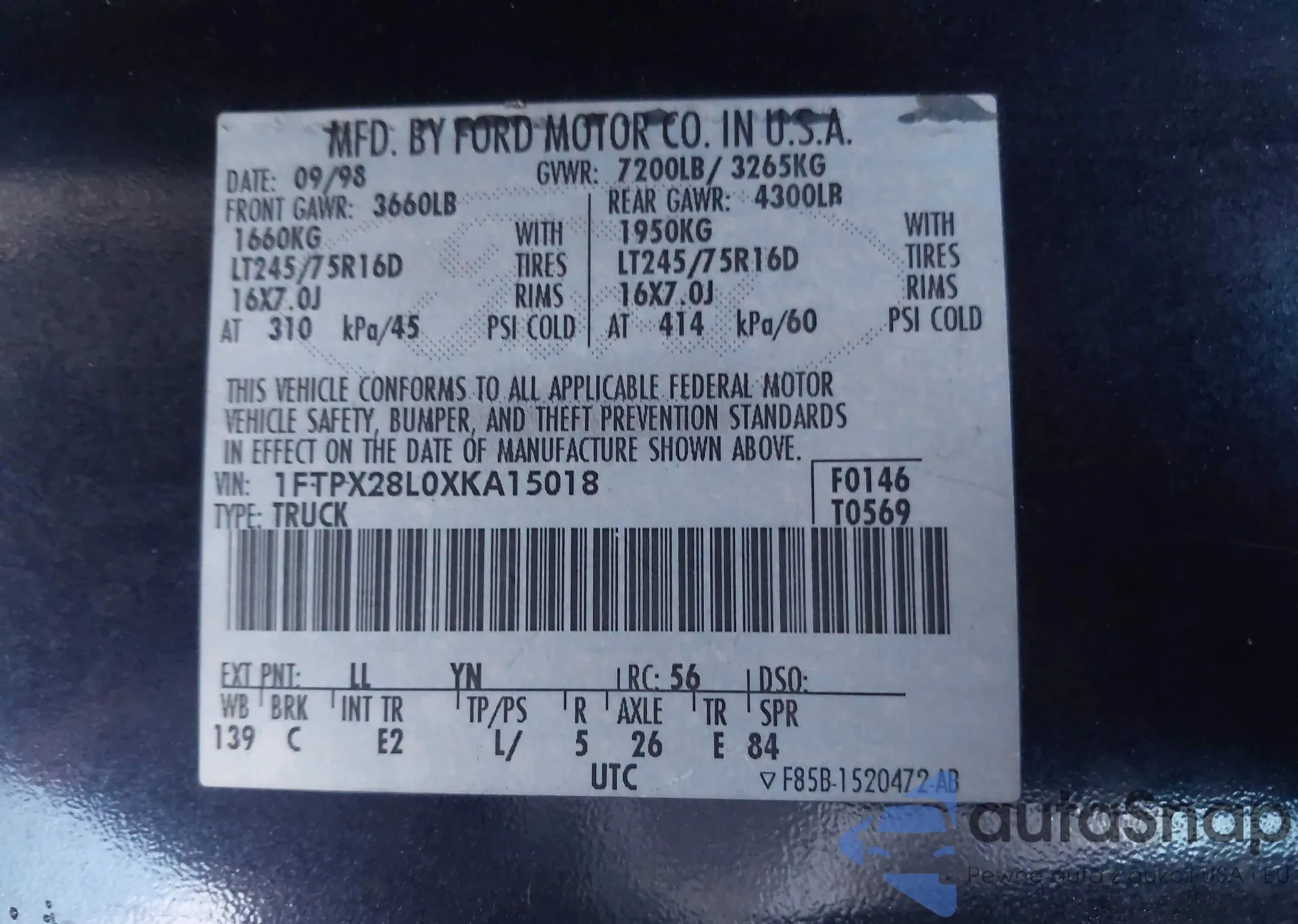 The car Ford F250 1999 (VIN 1FTPX28L0XKA15018) has already been auctioned 1 times and/or is sold by an unverified seller. We recommend checking the Carfax report and confirming registration possibilities before purchase.