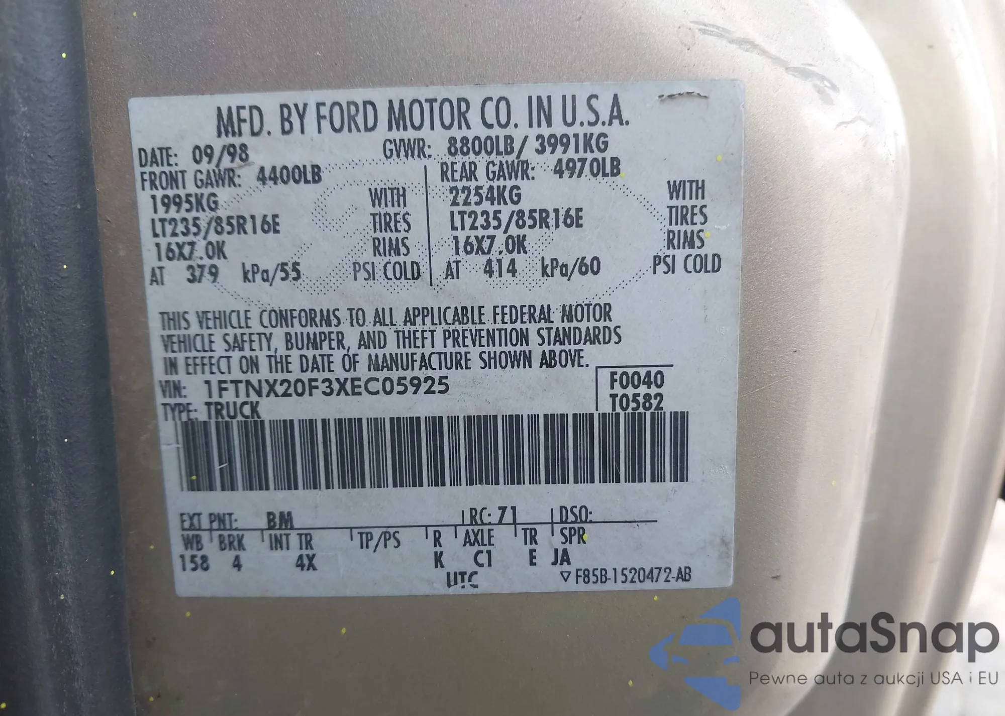 VIN: 1FTNX20F3XEC0592