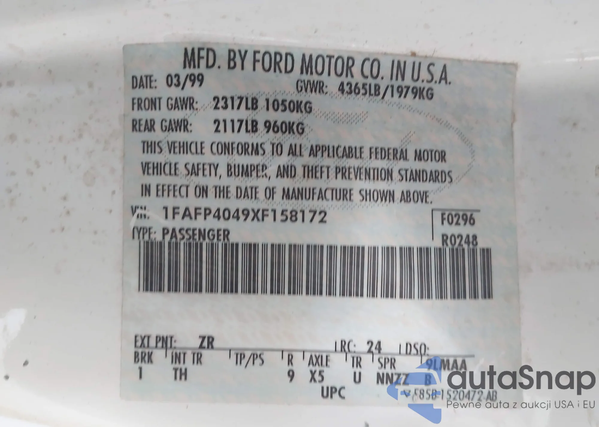VIN: 1FAFP4049XF158172