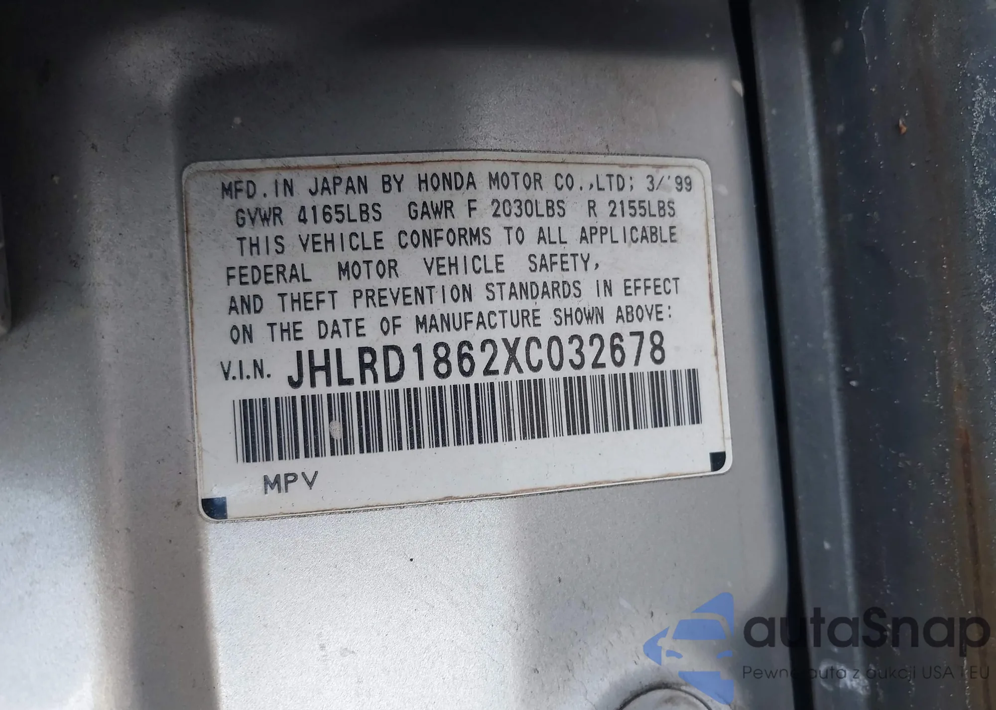 VIN: JHLRD1862XC032678