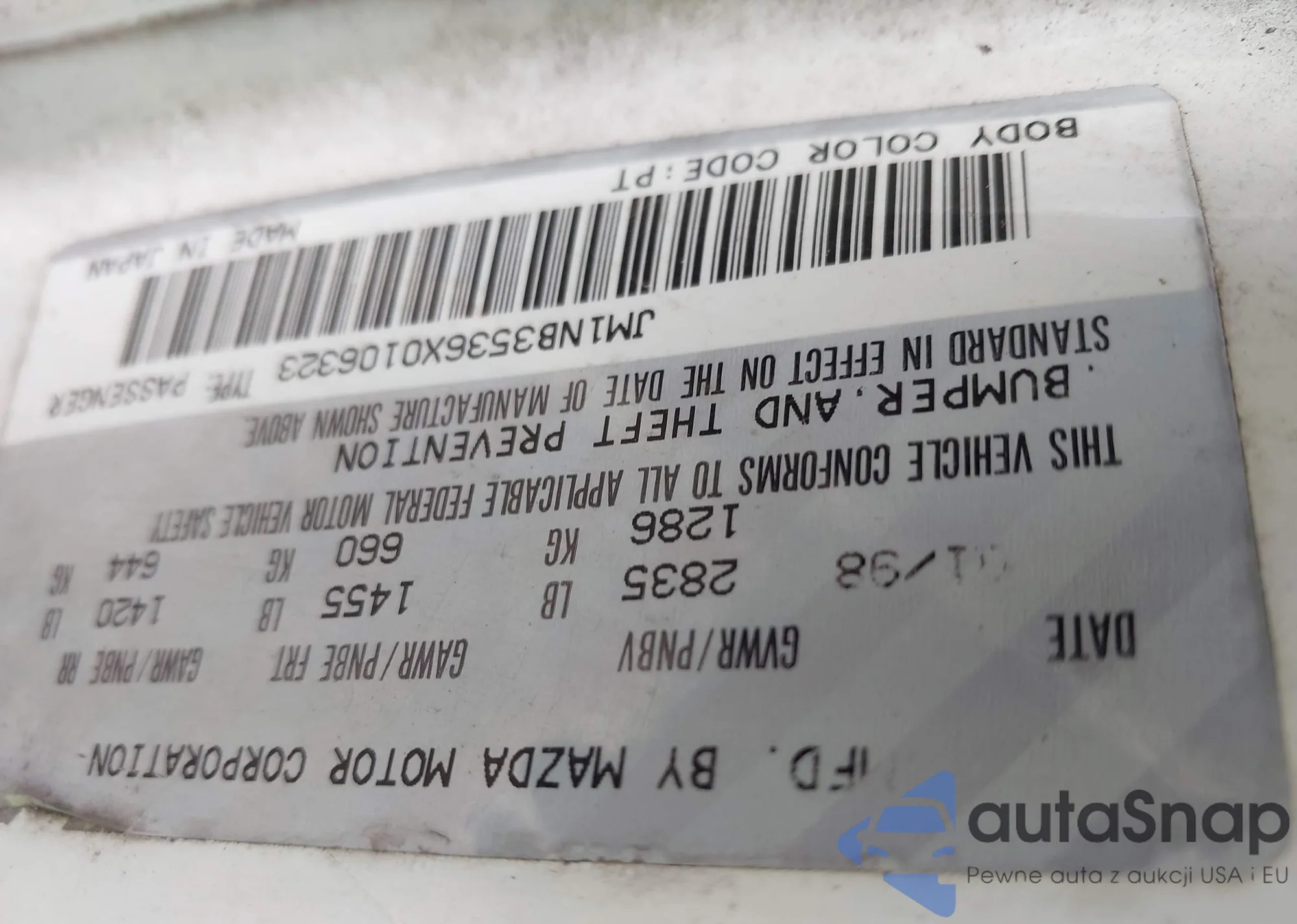 VIN: JM1NB3536X0106323