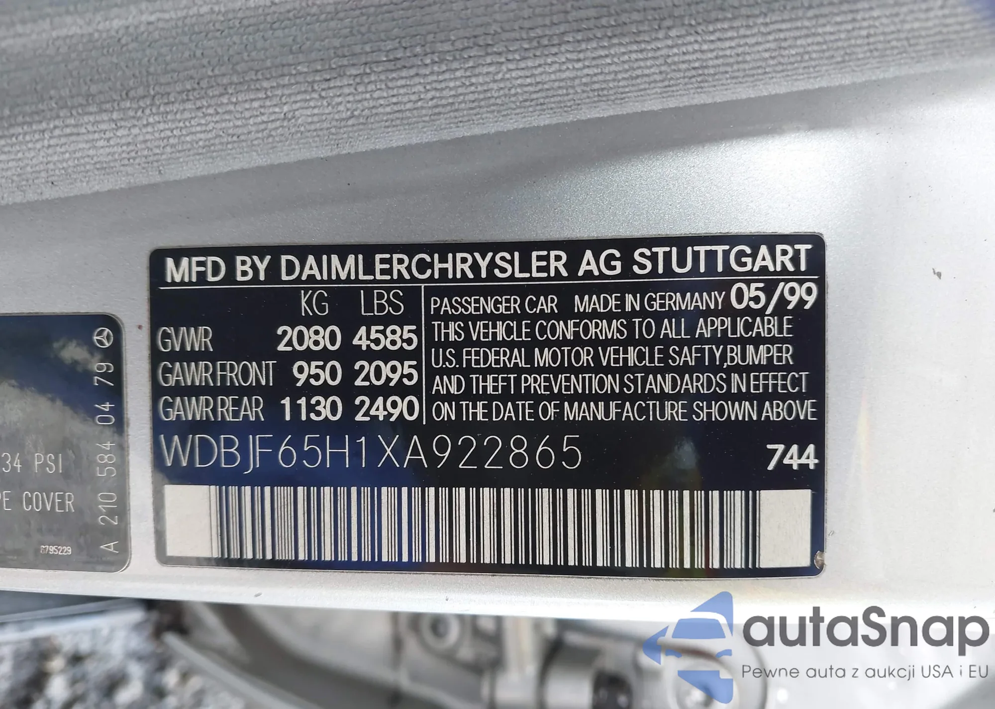 • VIN: WDBJF65H1XA922865