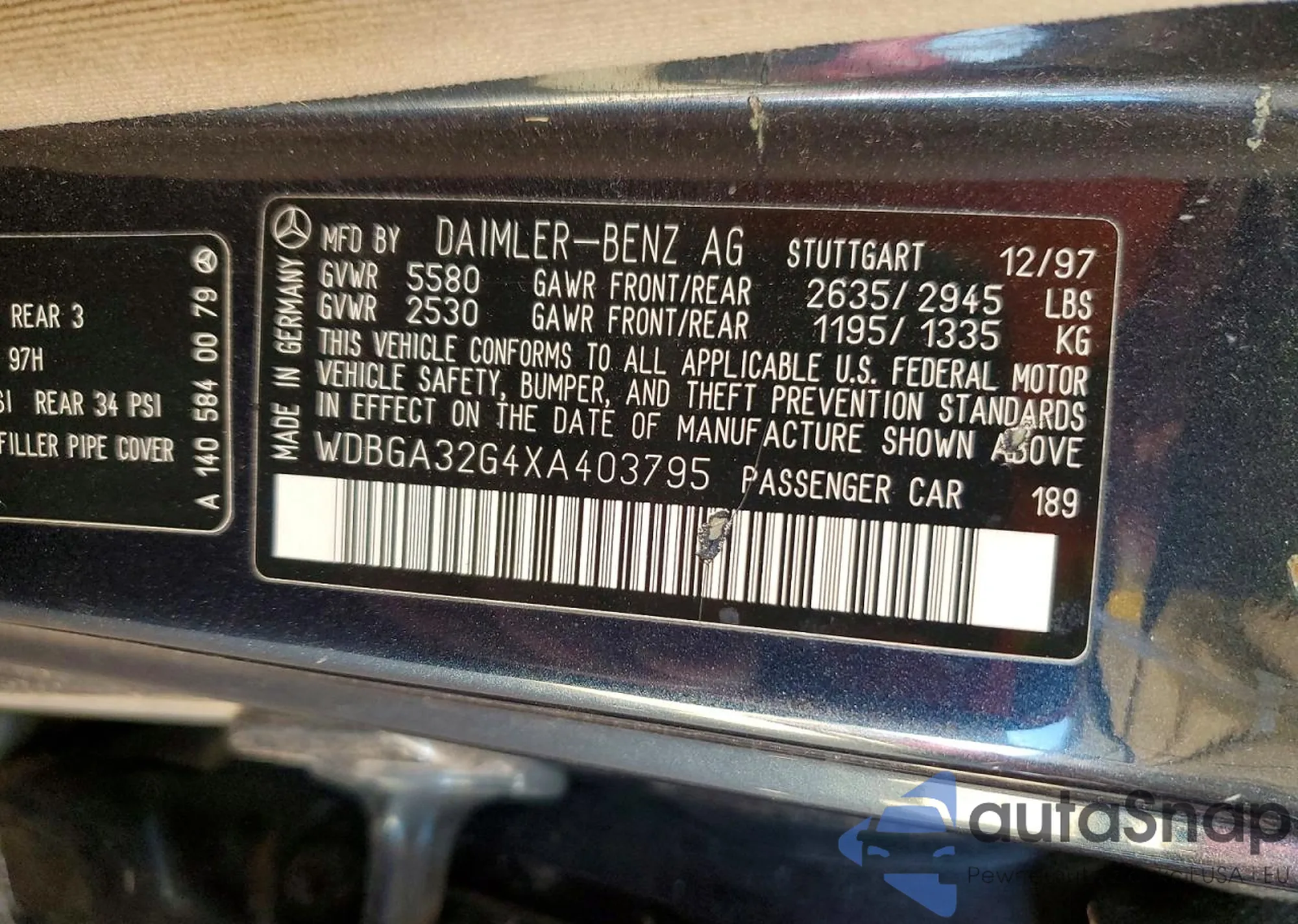 The car Mercedes-Benz S-klasse 1999 (VIN WDBGA32G4XA403795) has already been auctioned 1 times and/or is sold by an unverified seller. We recommend checking the Carfax report and confirming registration possibilities before purchase.