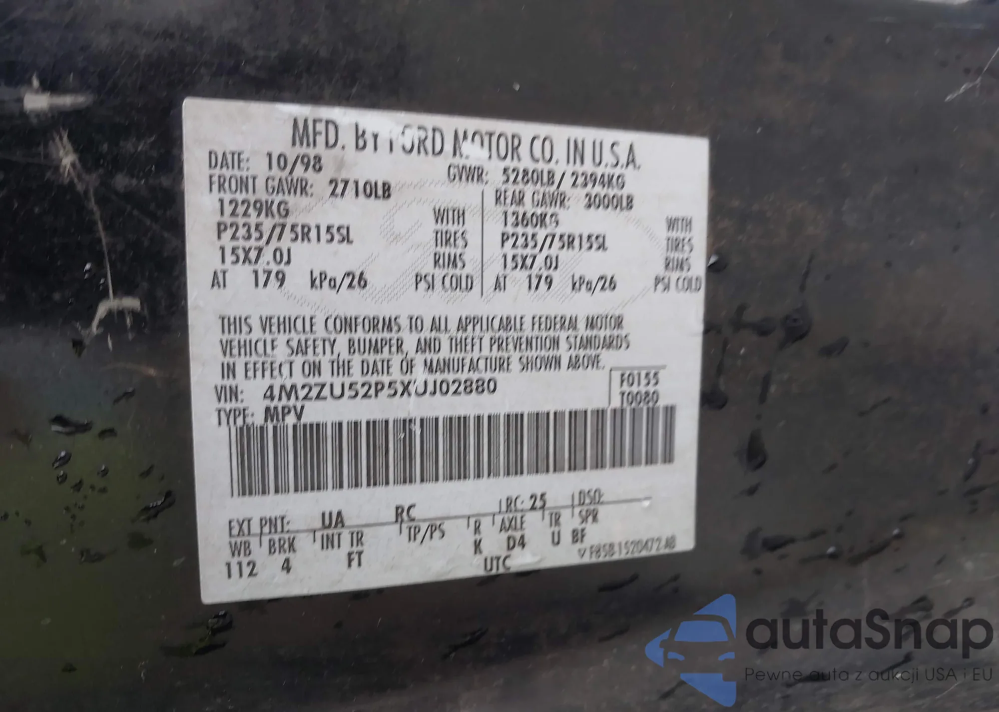 • VIN: 4M2ZU52P5XUJ02880