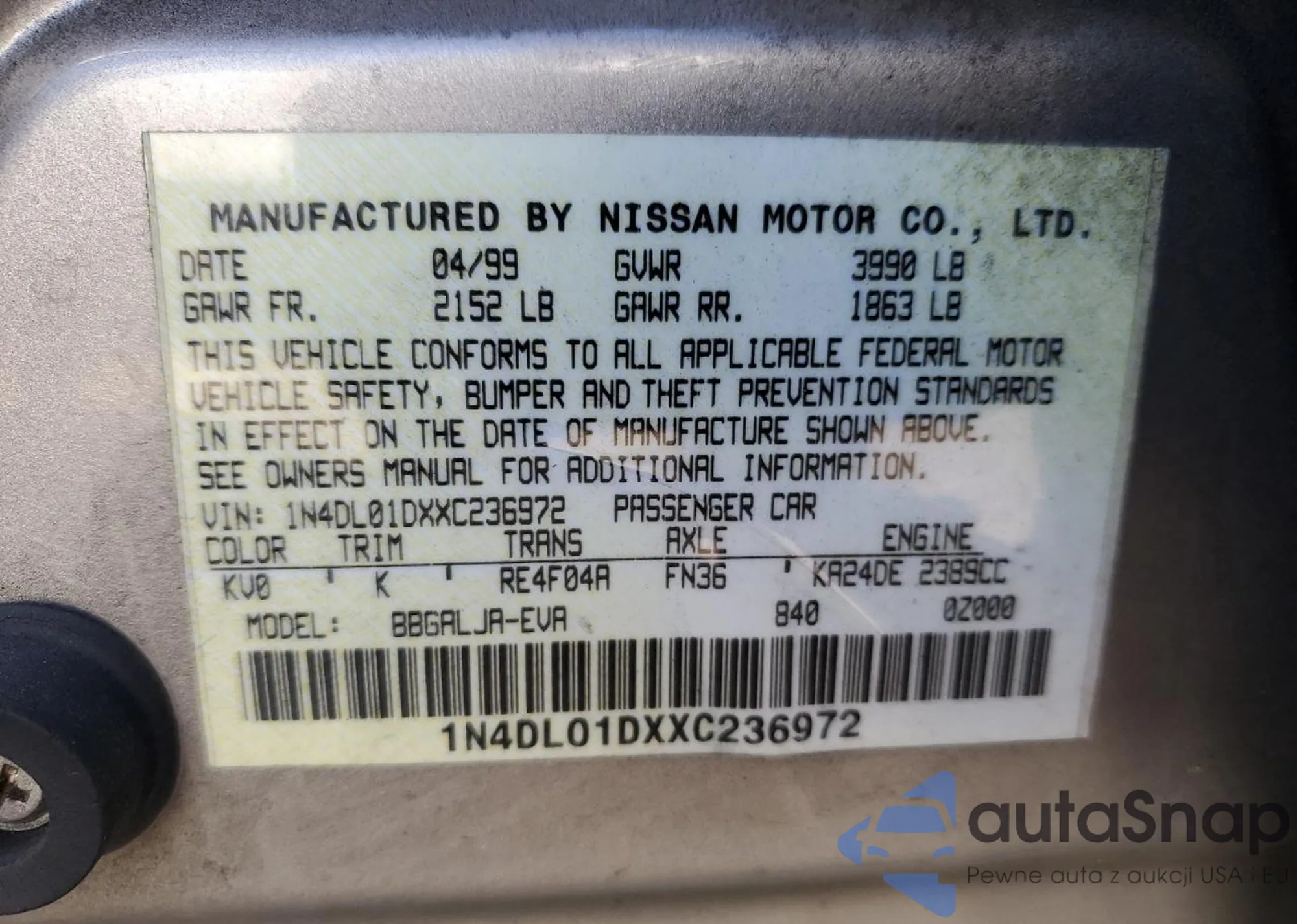 VIN: 1N4DL01DXXC236972