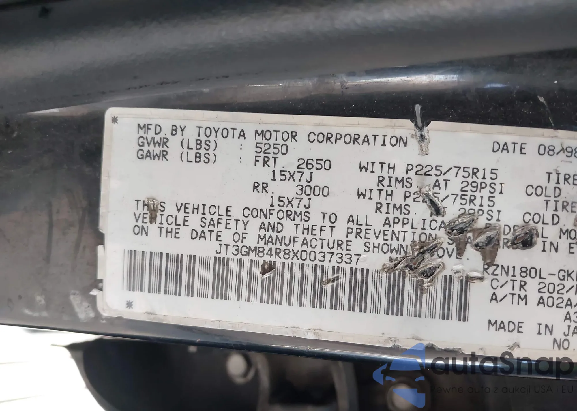The car Toyota 4Runner 1999 (VIN JT3GM84R8X0037337) is sold by an unverified seller. We recommend checking the Carfax report and confirming registration possibilities before purchase.
