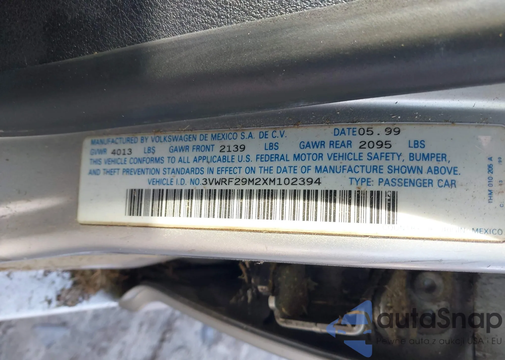VIN: 3VWRF29M2XM102394