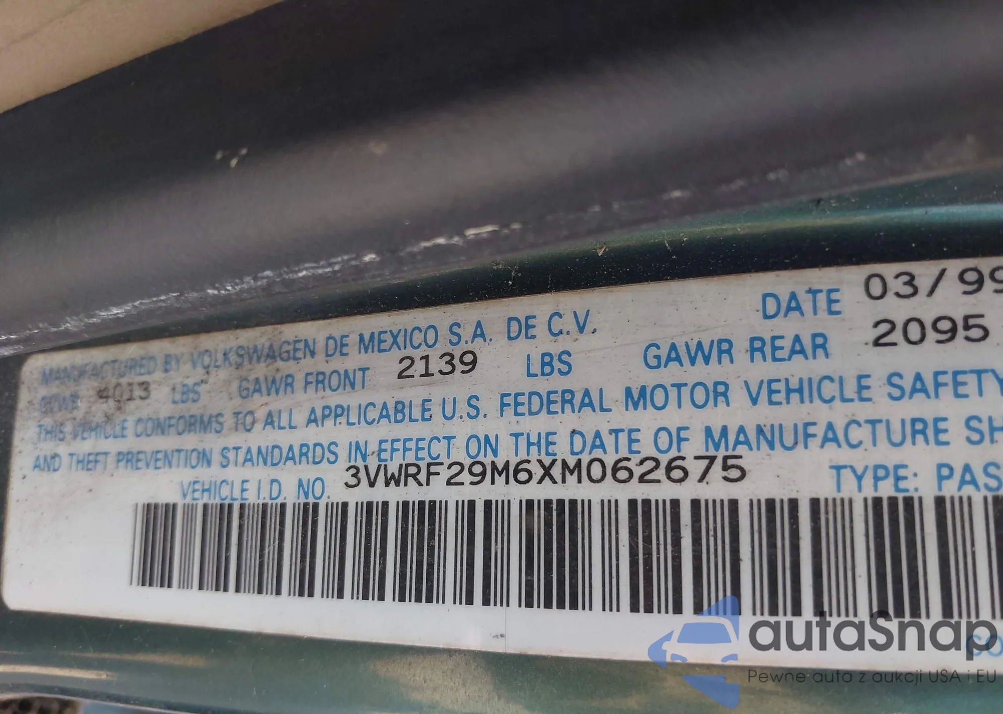 VIN: 3VWRF29M6XM062675