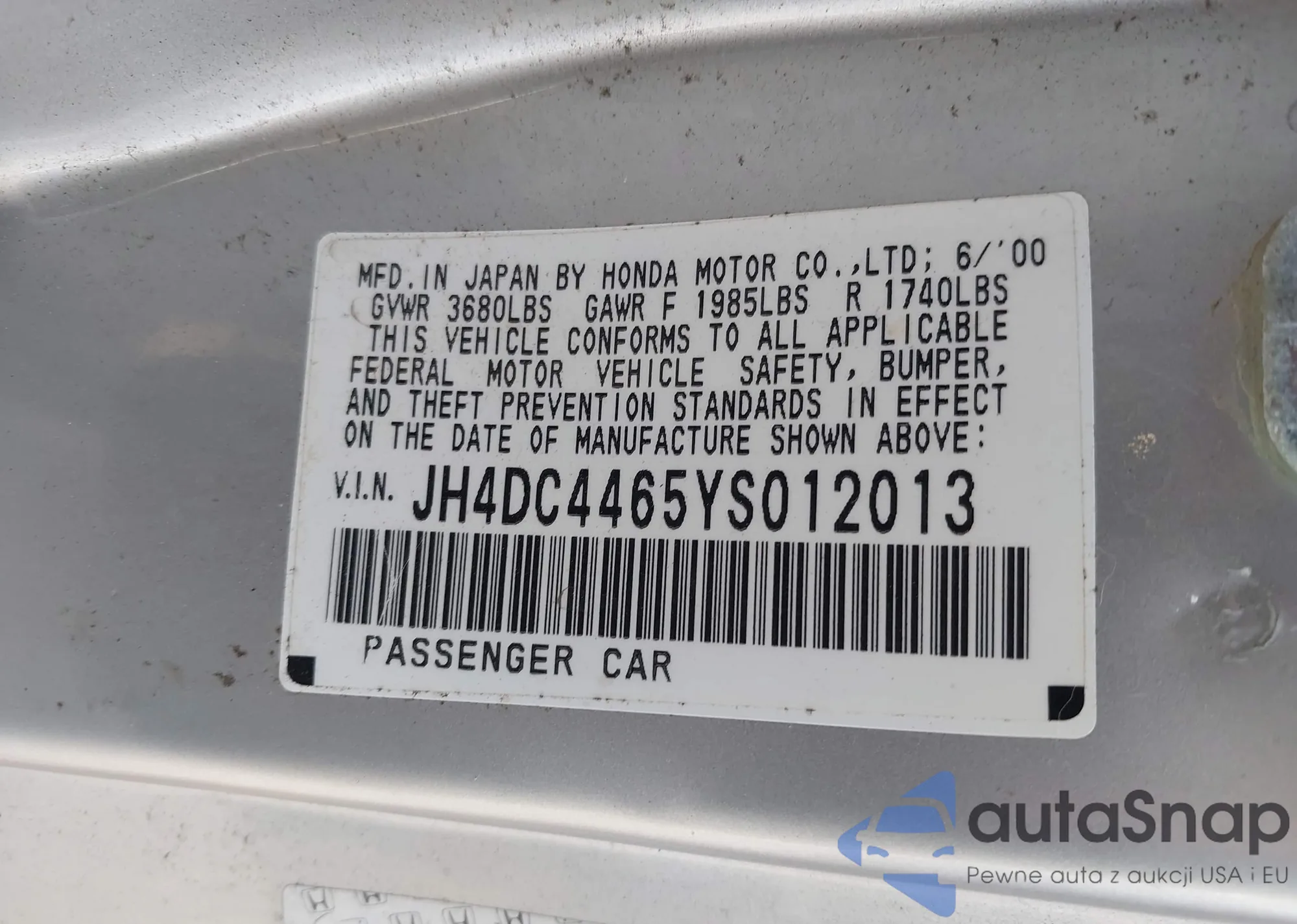 VIN: JH4DC4465YS012013