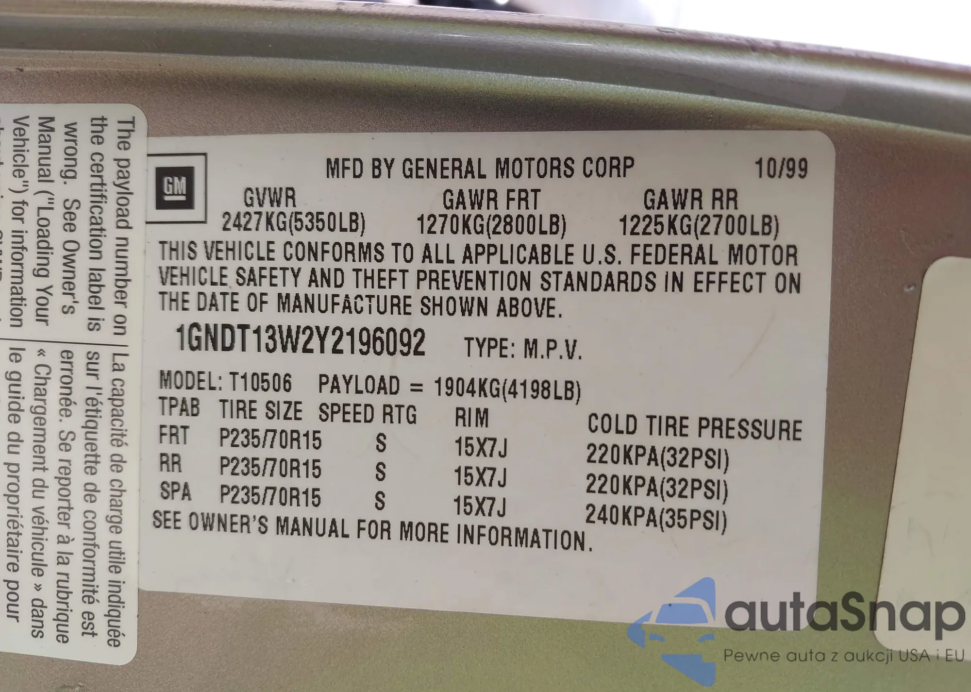 VIN: 1GNDT13W2Y2196092