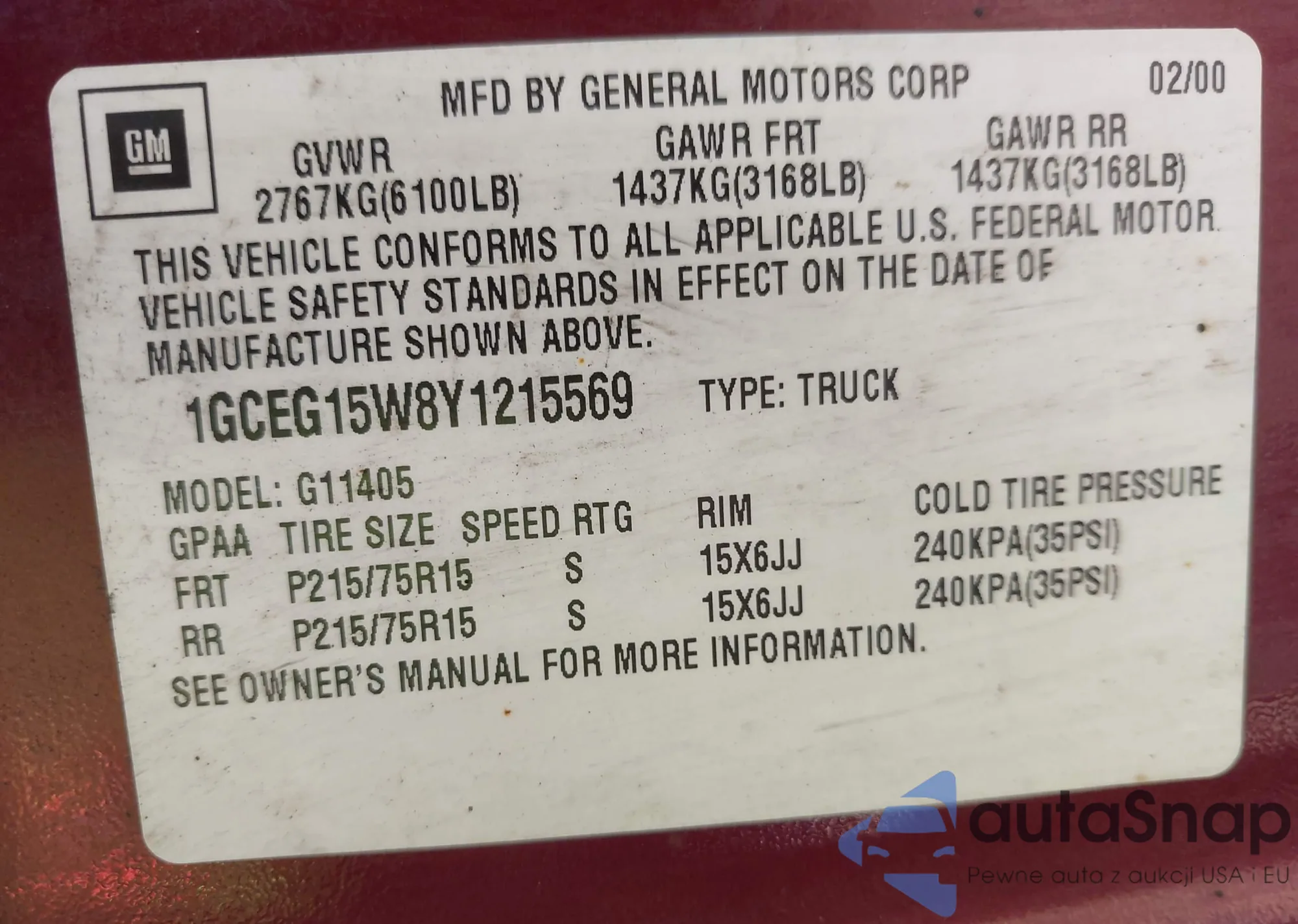 VIN: 1GCEG15W8Y1215569