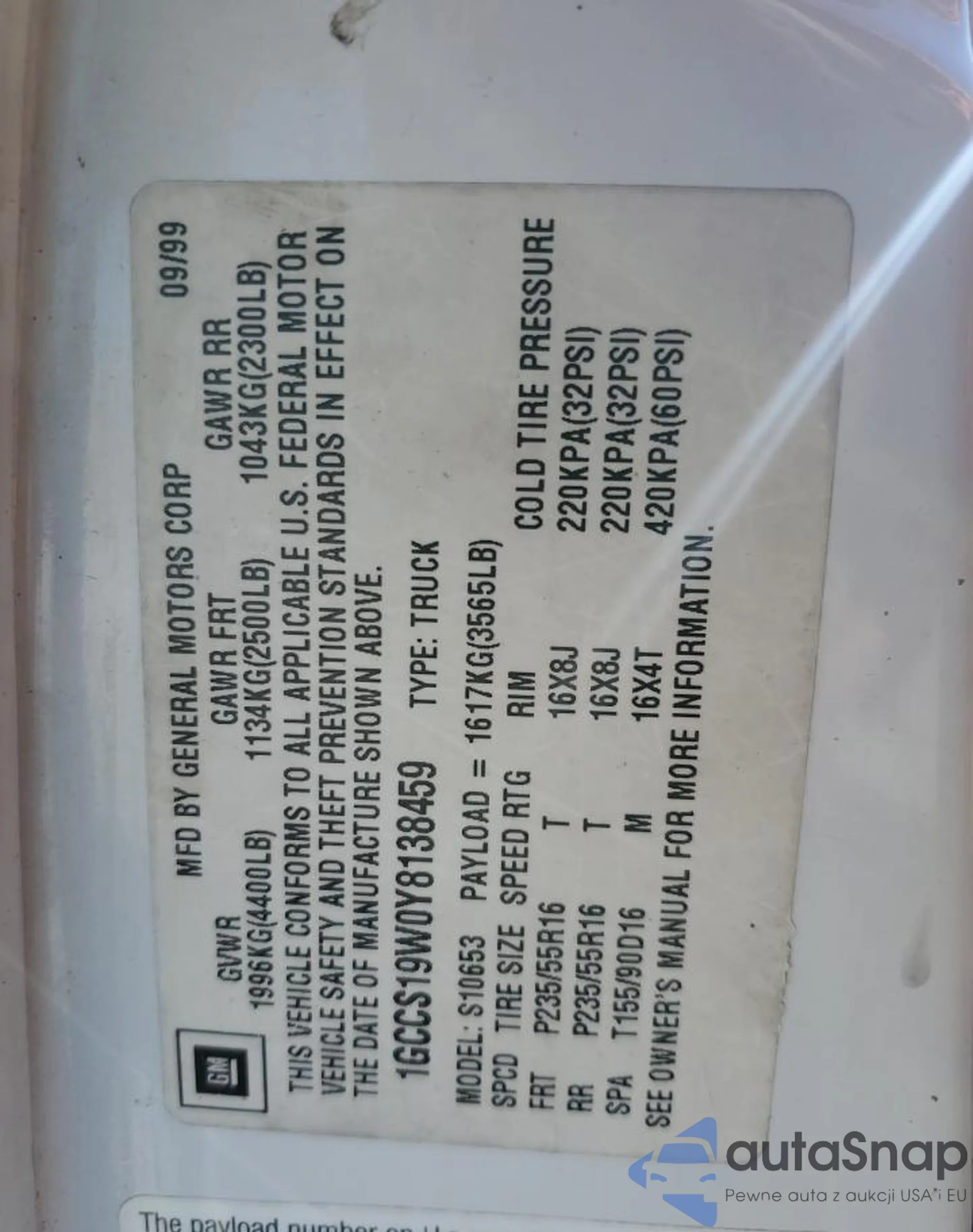 The car Chevrolet S-10 Pickup 2000 (VIN 1GCCS19W0Y8138459) is sold by an unverified seller. We recommend checking the Carfax report and confirming registration possibilities before purchase.