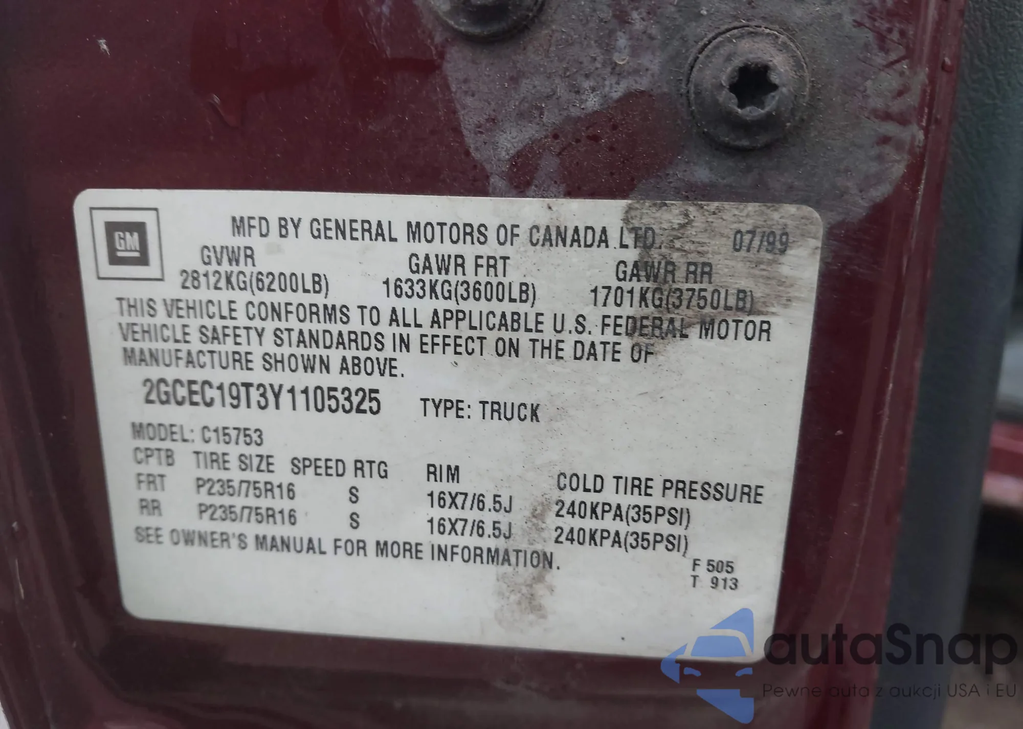 VIN: 2GCEC19T3Y1105325