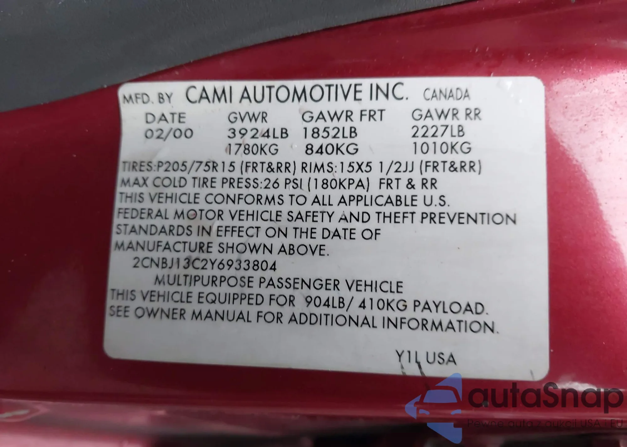 The car Chevrolet Tracker 2000 (VIN 2CNBJ13C2Y6933804) is sold by an unverified seller. We recommend checking the Carfax report and confirming registration possibilities before purchase.