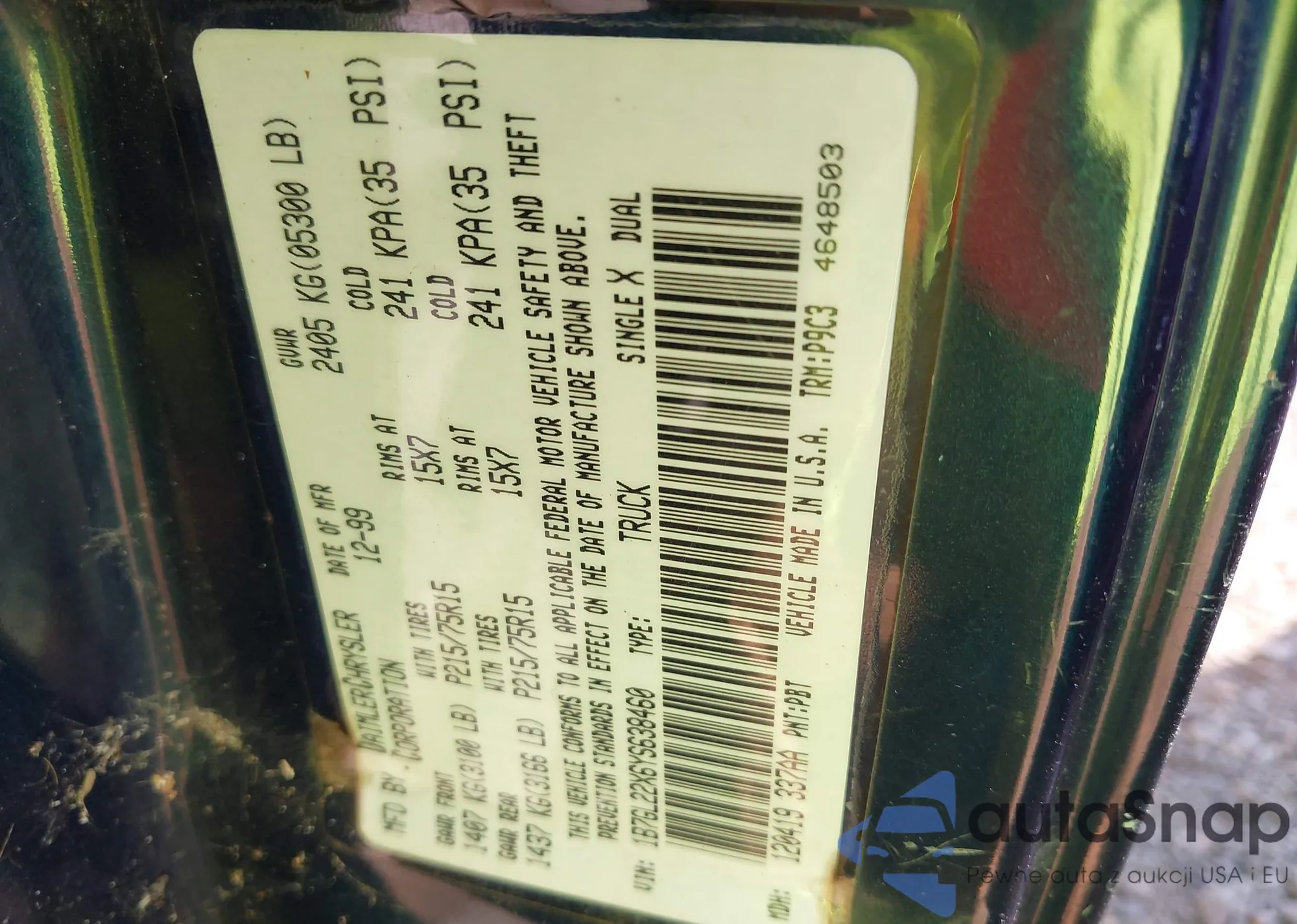 Dodge Dakota 2000 – Vehicle History (Sold at IAAI)