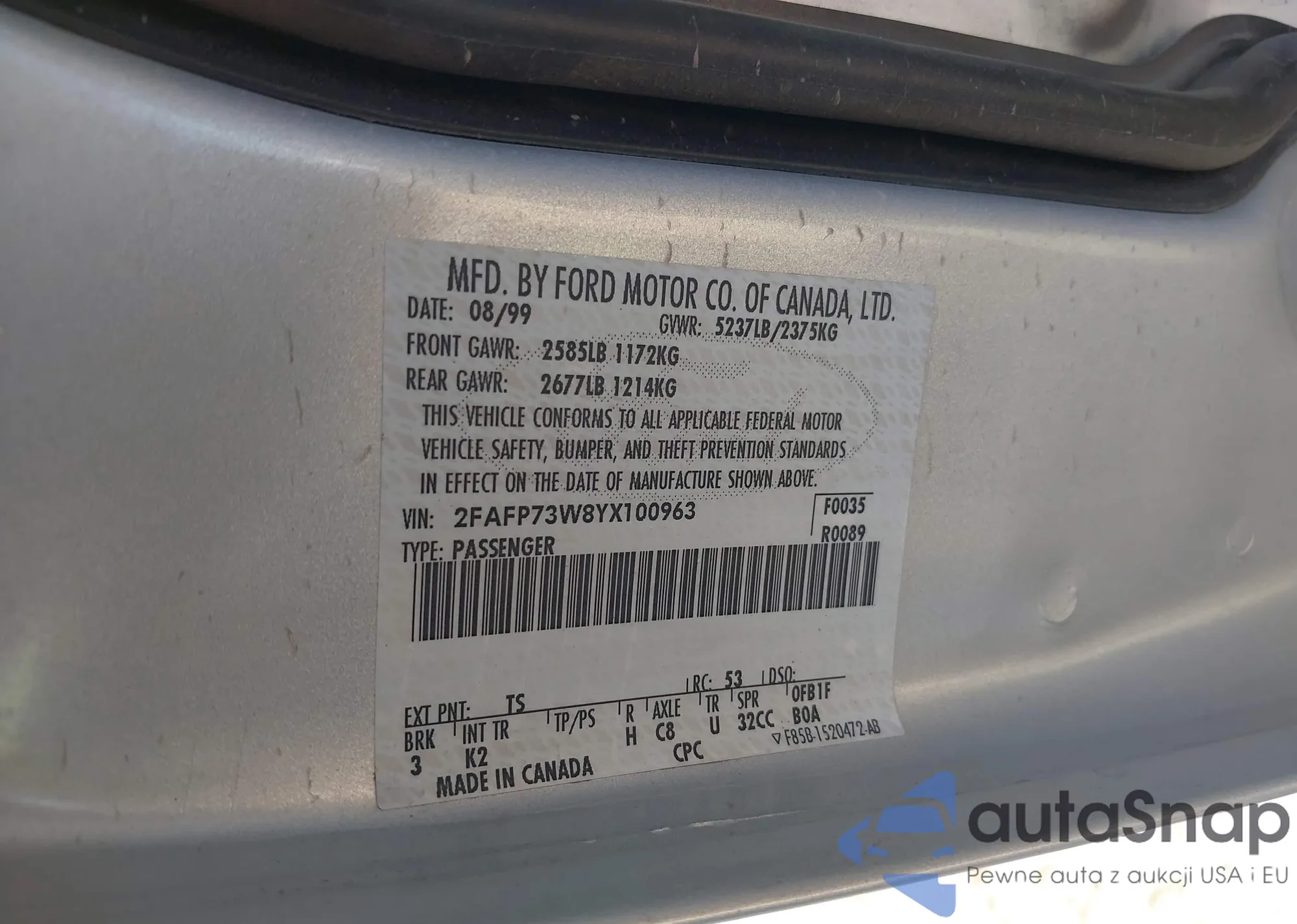 • VIN: 2FAFP73W8YX100963