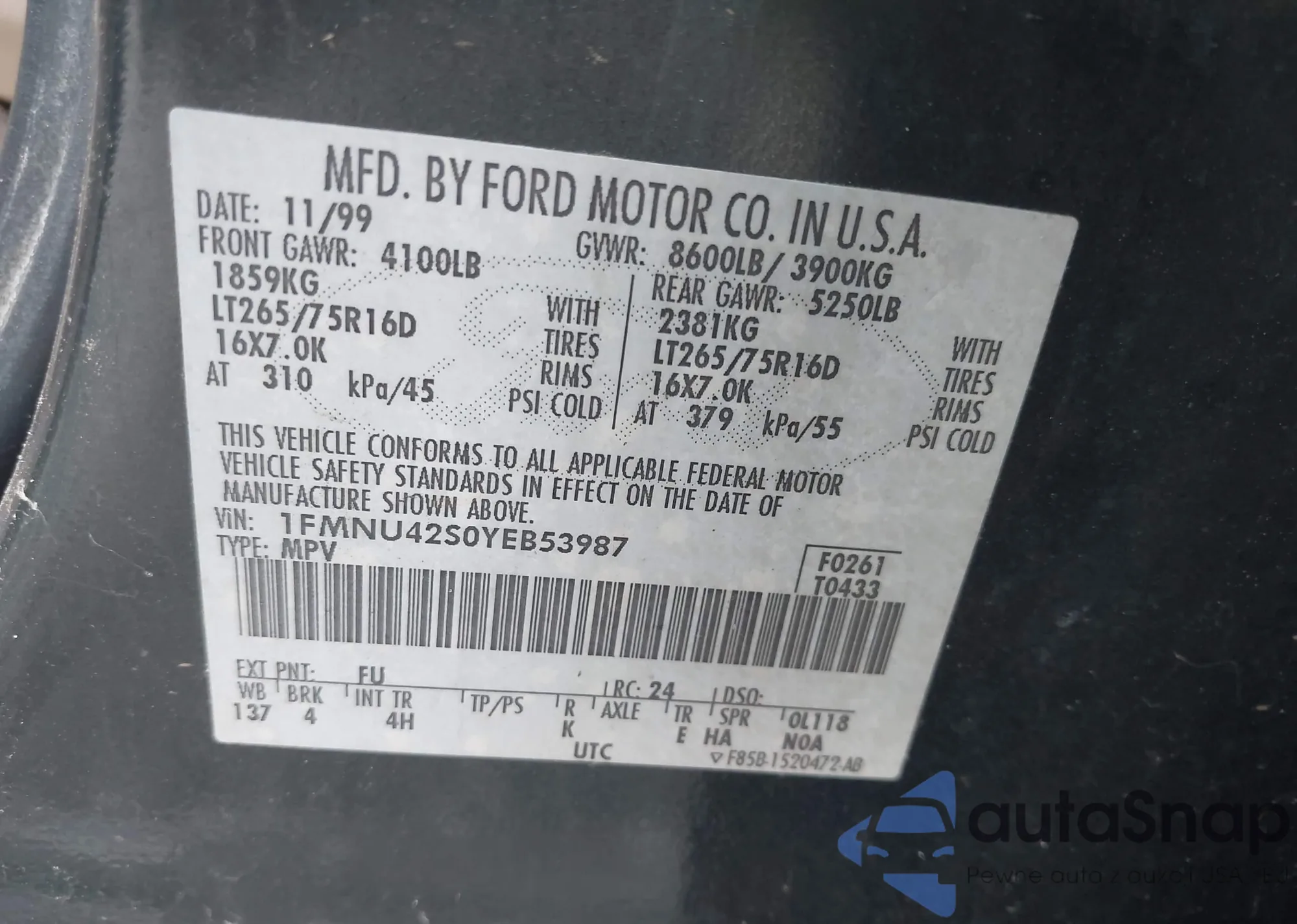 VIN: 1FMNU42S0YEB53987