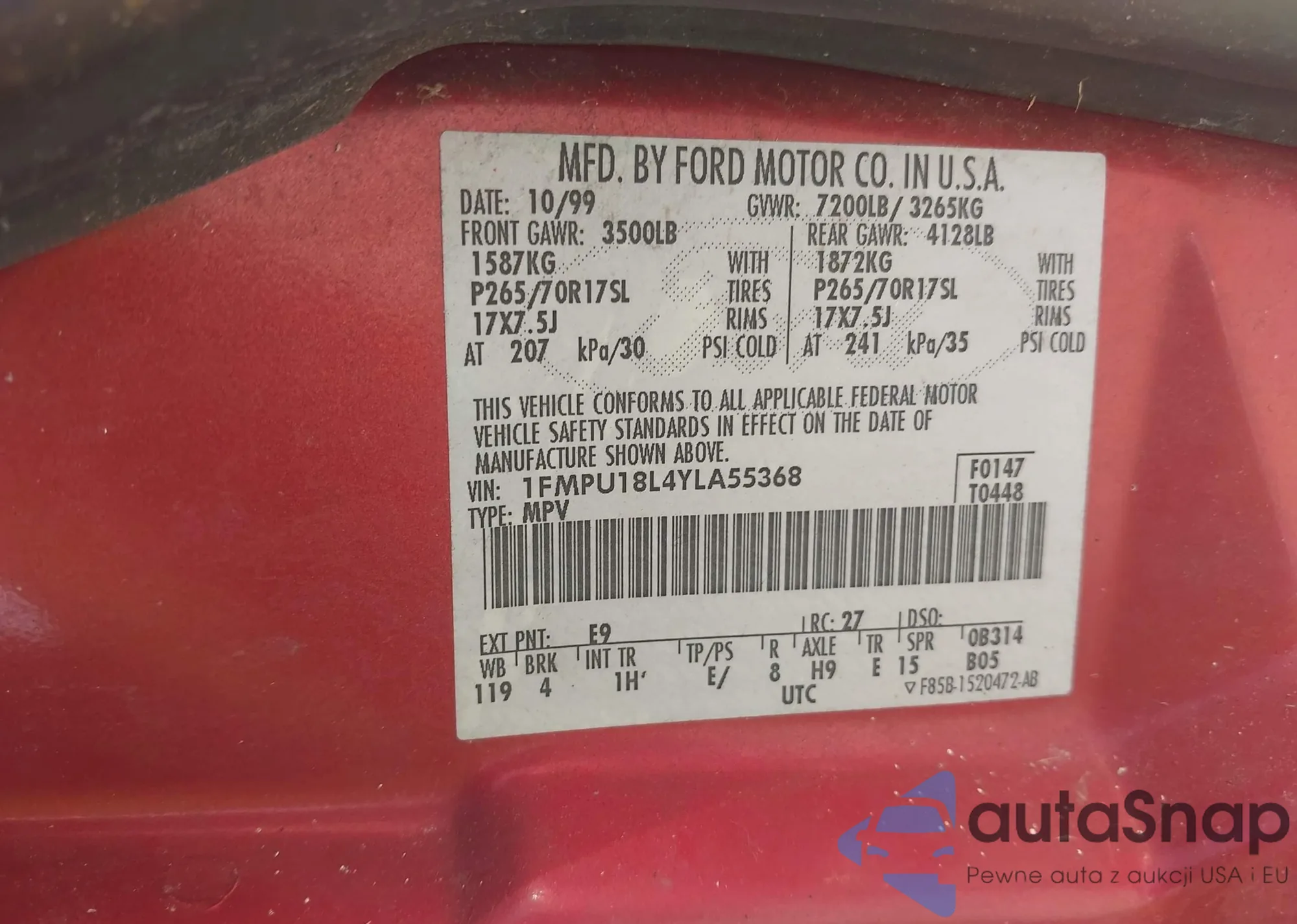 VIN: 1FMPU18L4YLA55368