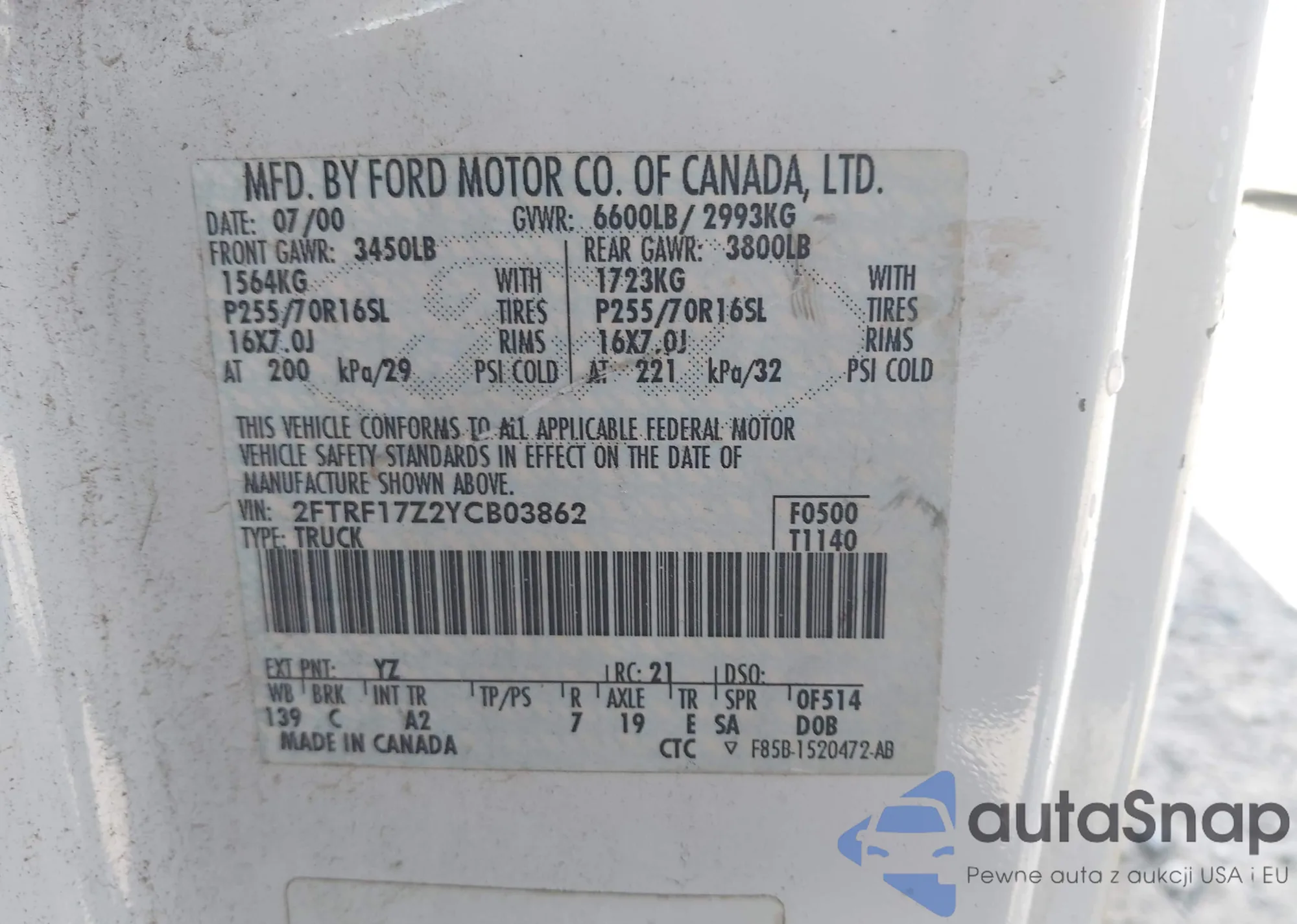 VIN: 2FTRF17Z2YCB03862