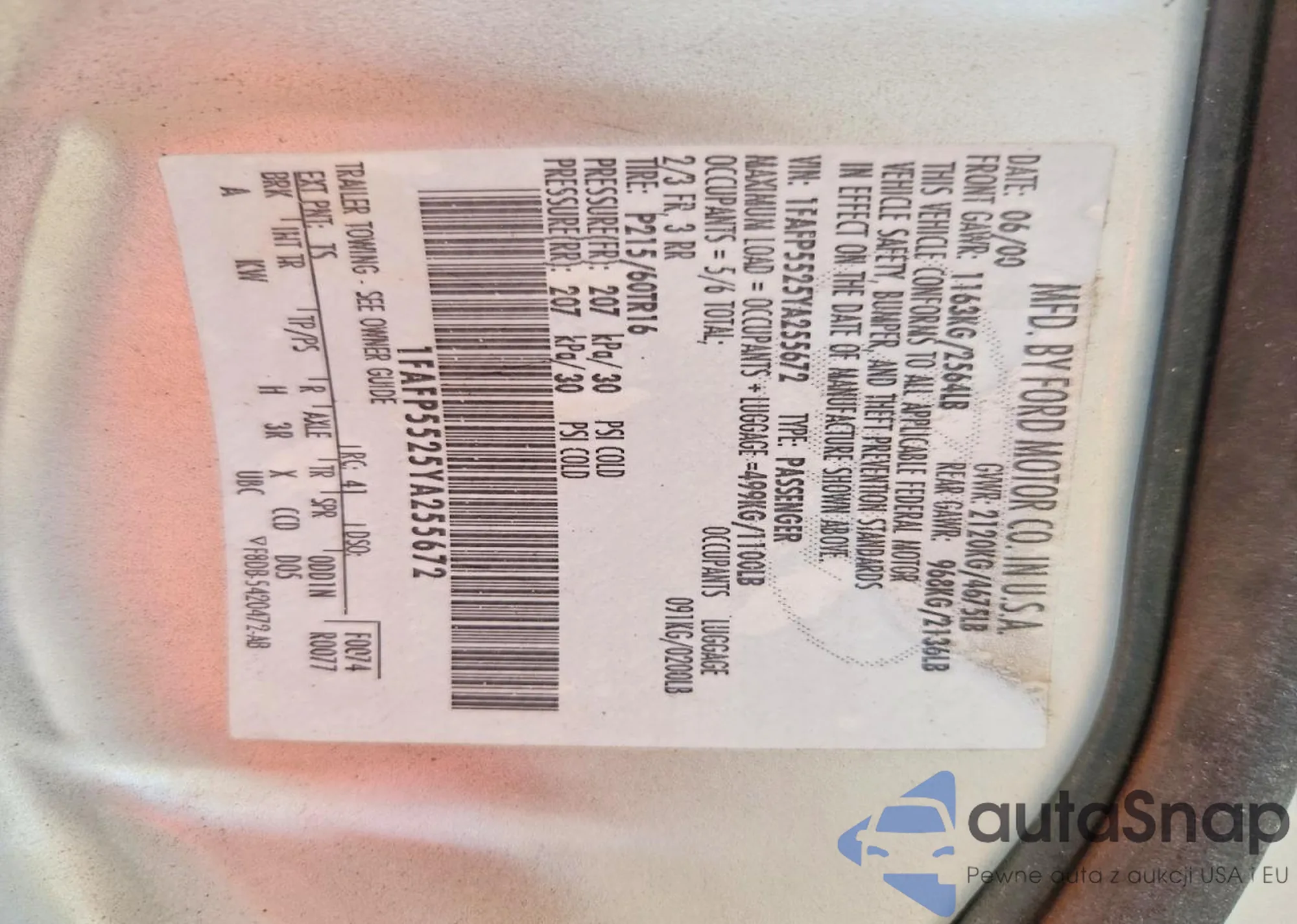 VIN: 1FAFP5525YA255672