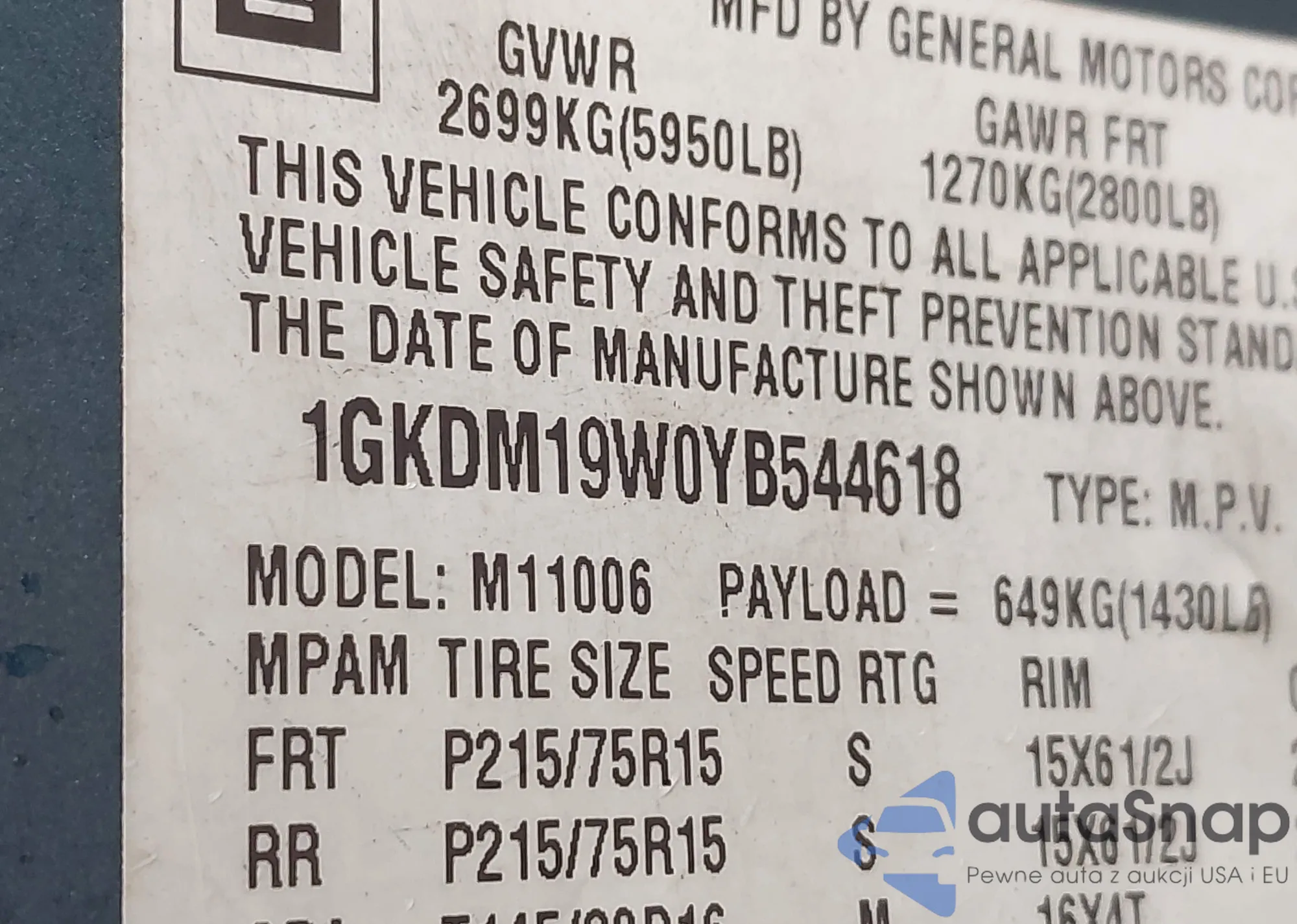 The car GMC Safari 2000 (VIN 1GKDM19W0YB544618) has not been auctioned before. The documents are clean, and the mileage matches or is below the market average. Sold by an insurance company – we recommend purchase. Delivery to the port will take approx. 6–8 weeks.