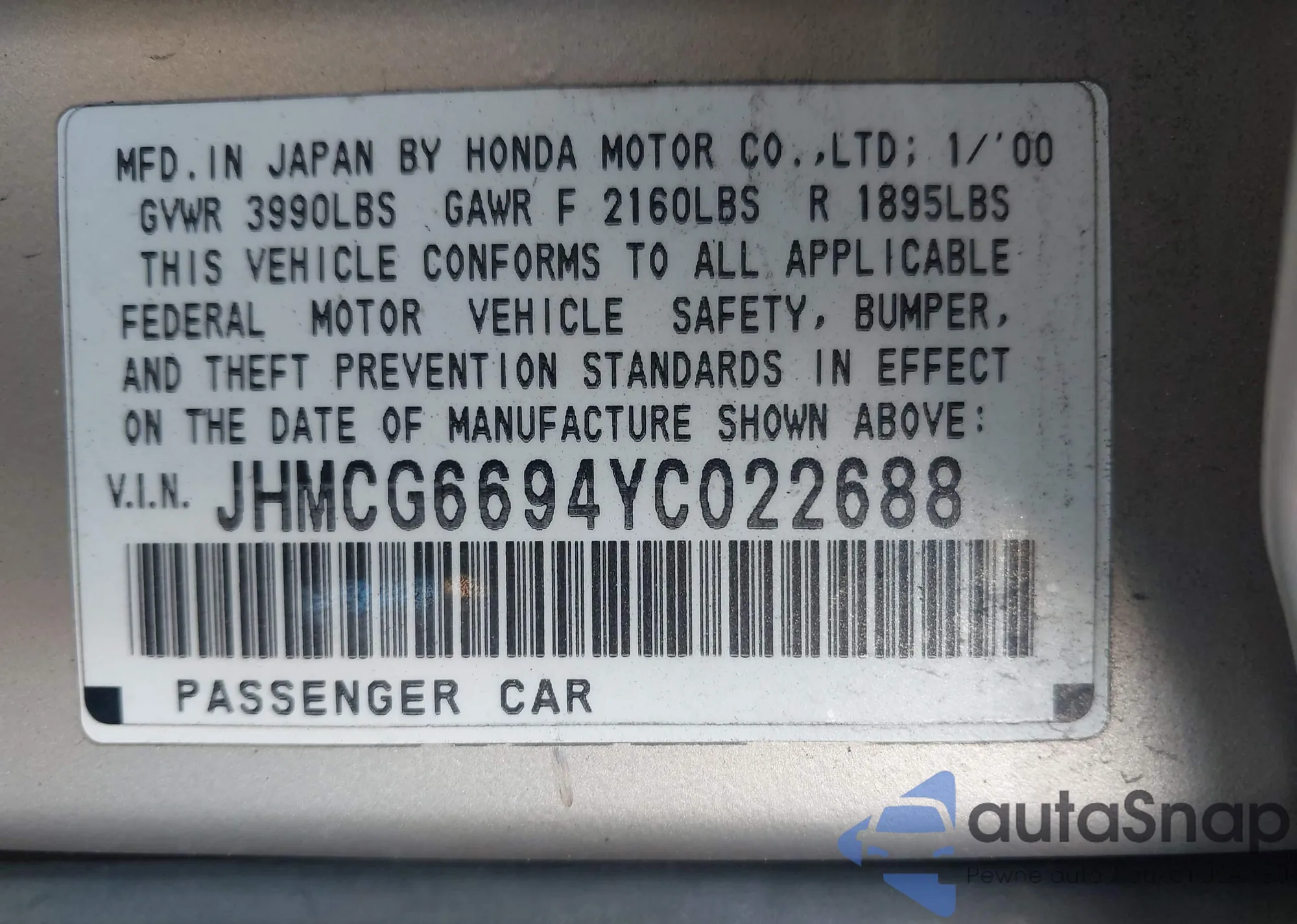 • VIN: JHMCG6694YC022688