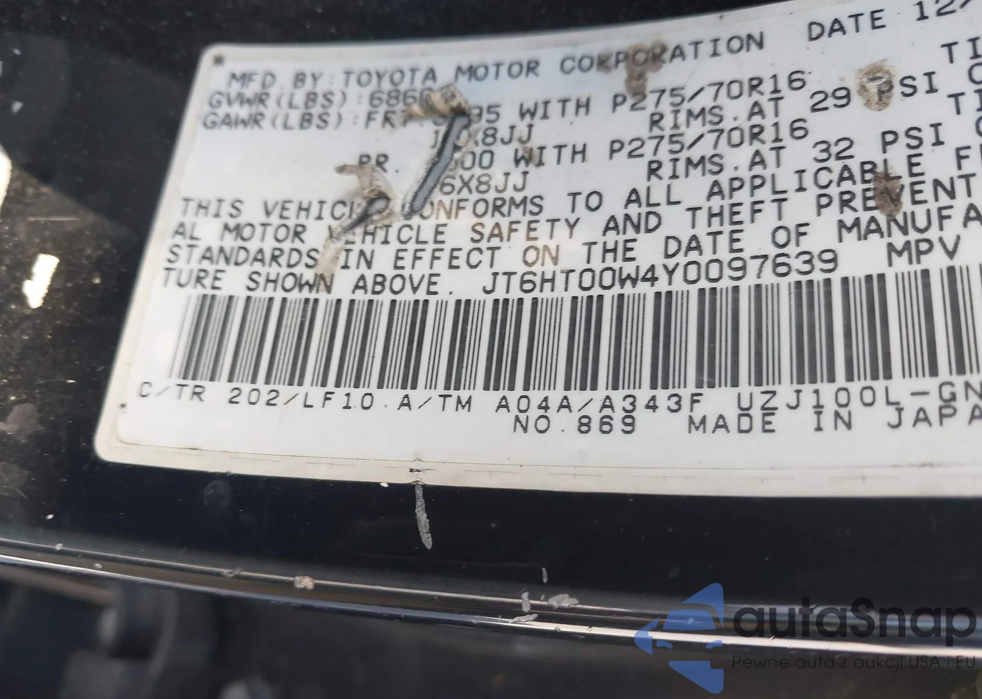 VIN: JT6HT00W4Y0097639