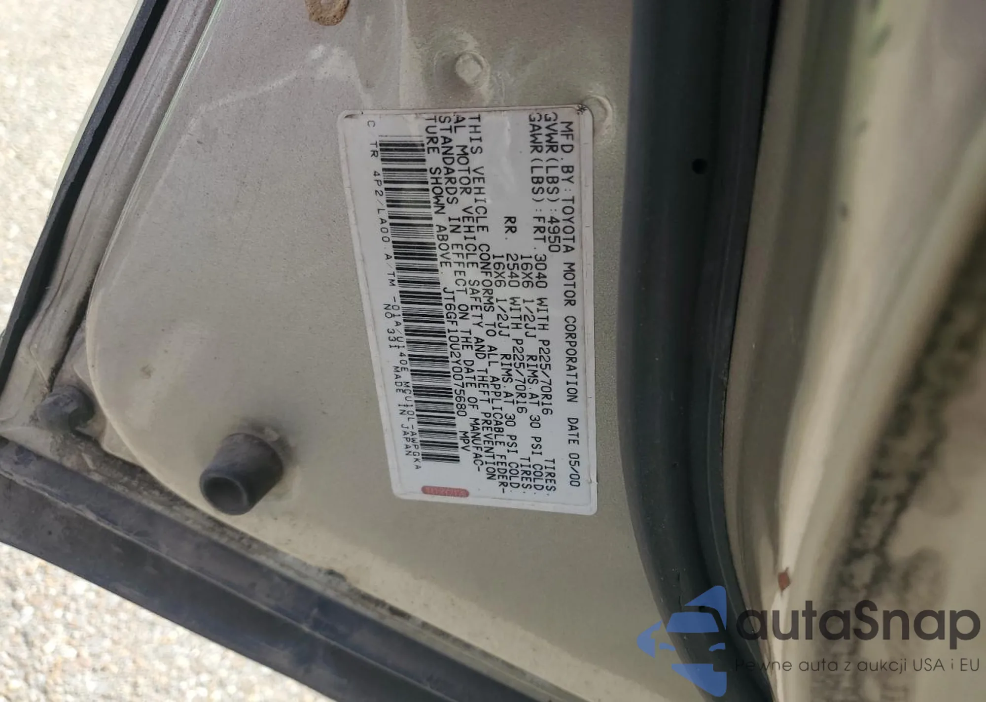 VIN: JT6GF10U2Y0075680