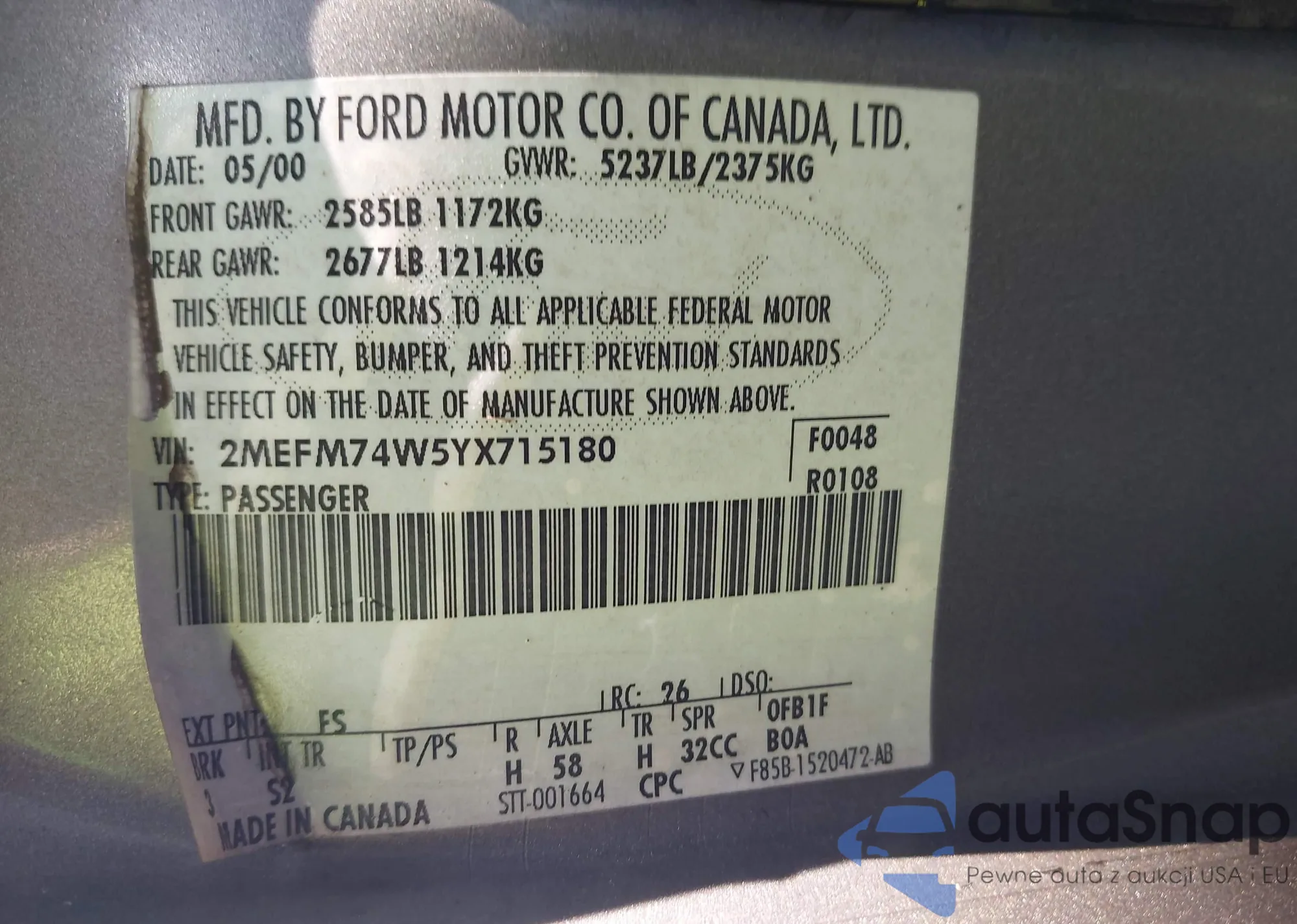 VIN: 2MEFM74W5YX715180