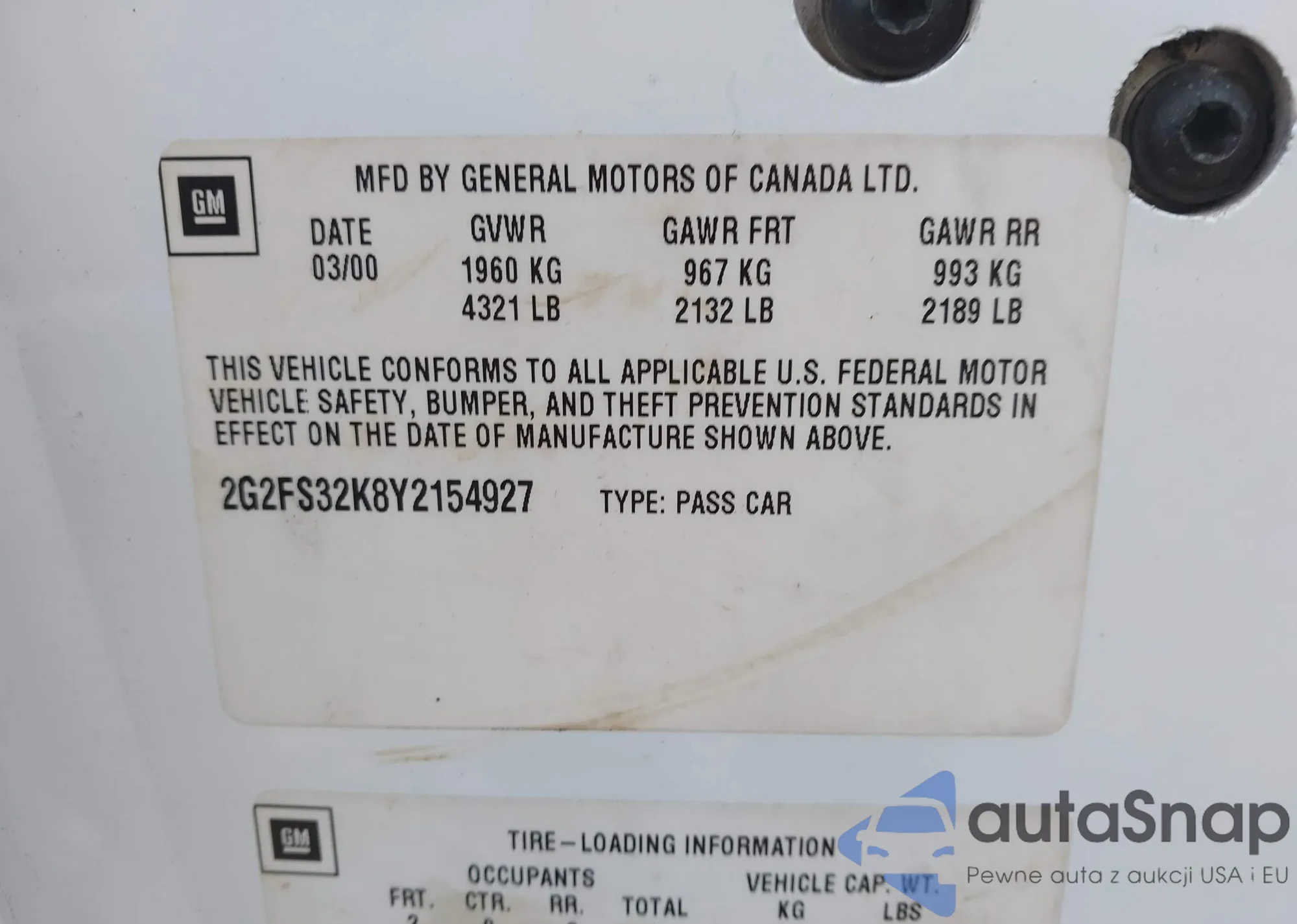 VIN: 2G2FS32K8Y2154927