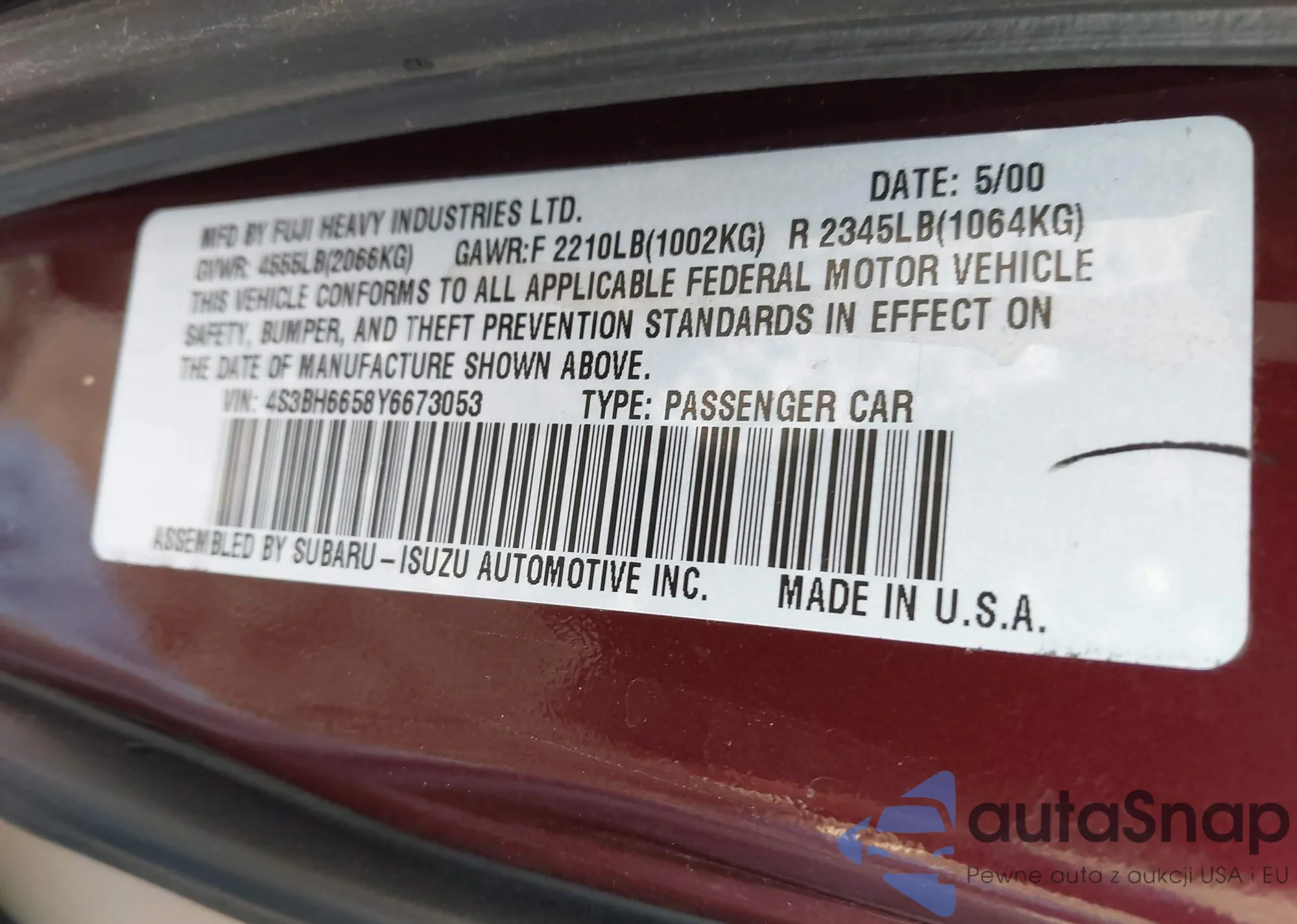 The car Subaru Outback 2000 (VIN 4S3BH6658Y6673053) is sold by an unverified seller. We recommend checking the Carfax report and confirming registration possibilities before purchase.