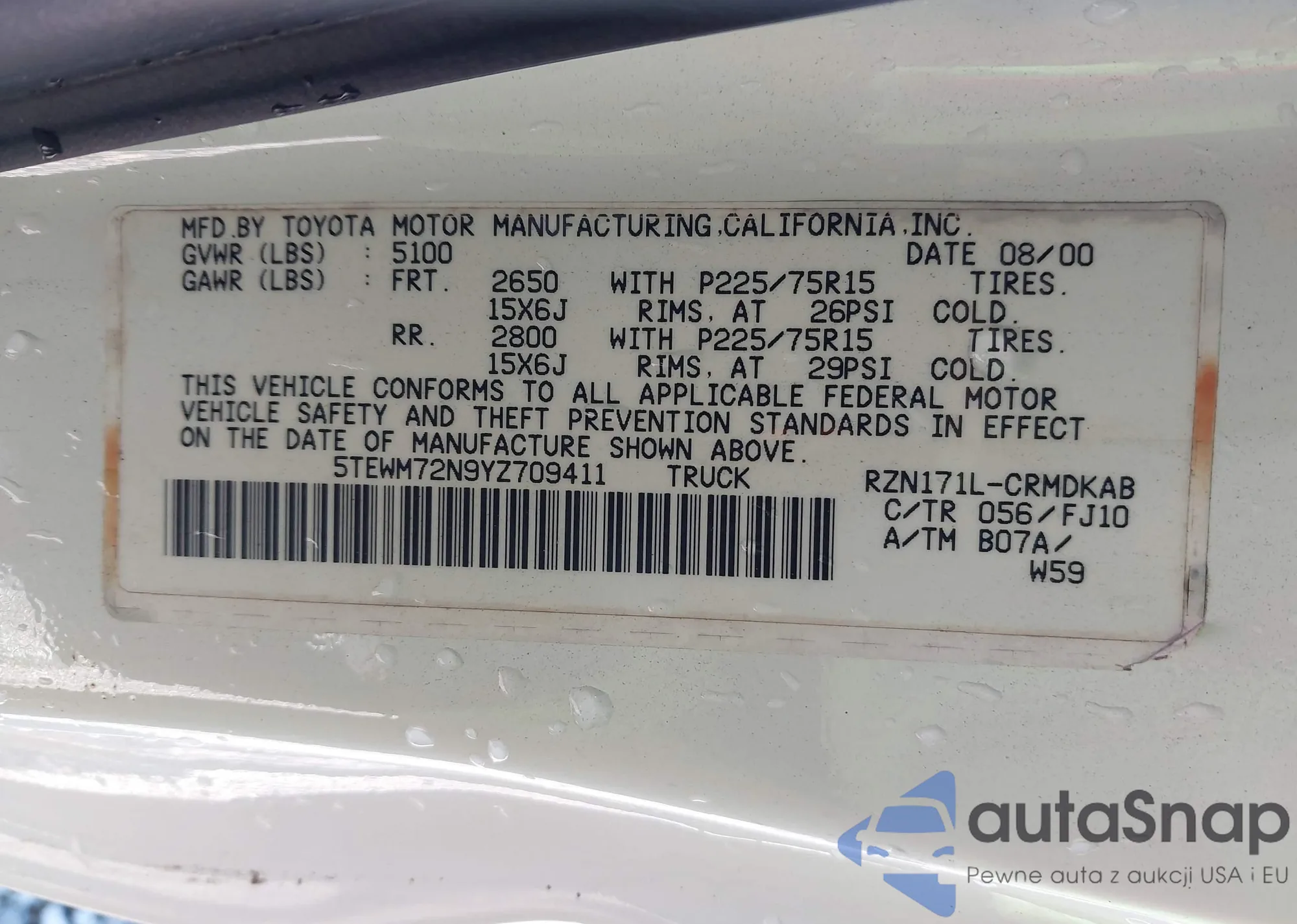 VIN: 5TEWM72N9YZ709411