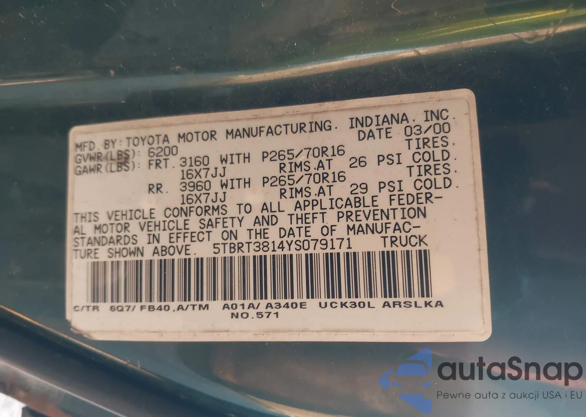 • VIN: 5TBRT3814YS079171