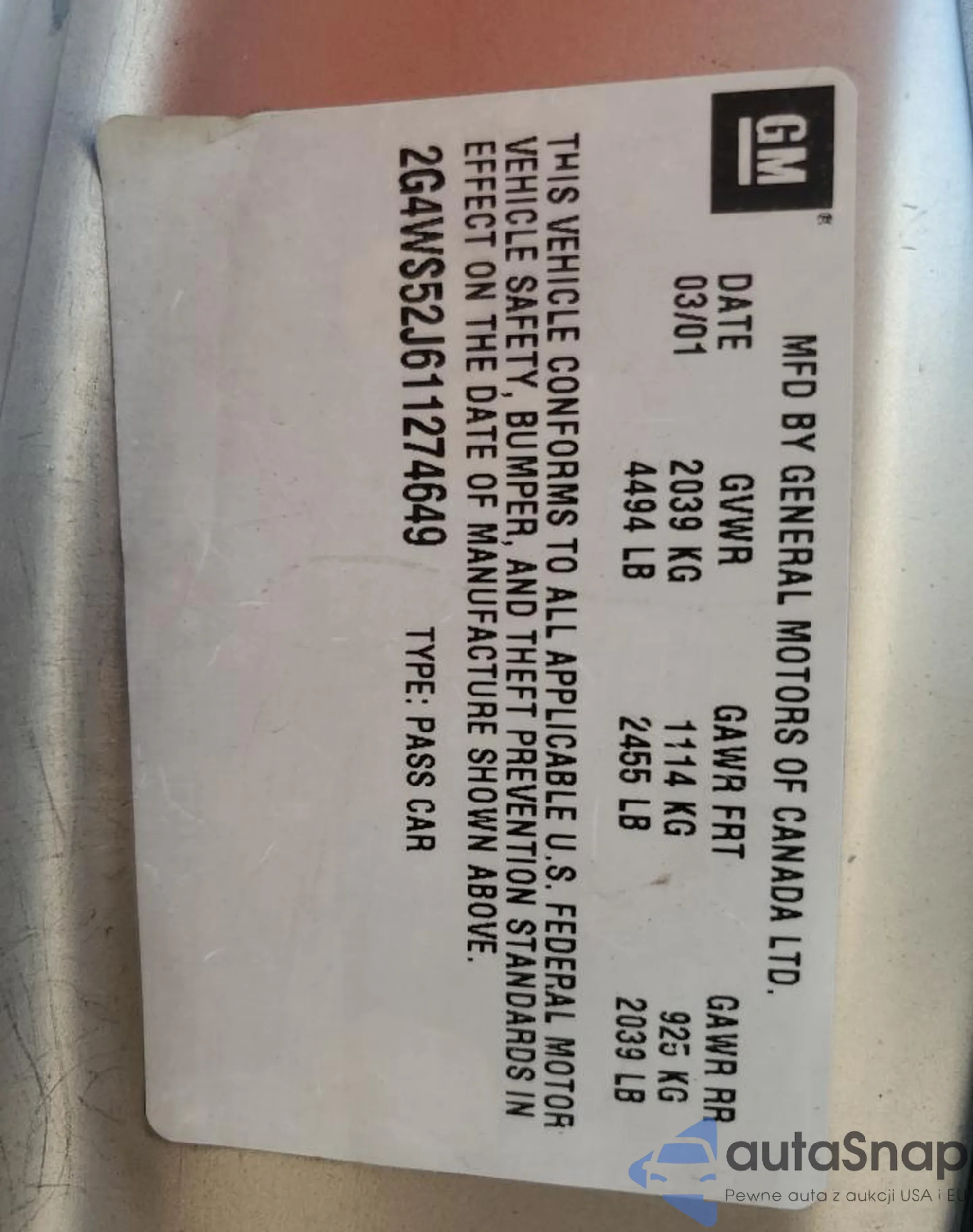 2G4WS52J611274649 COPART